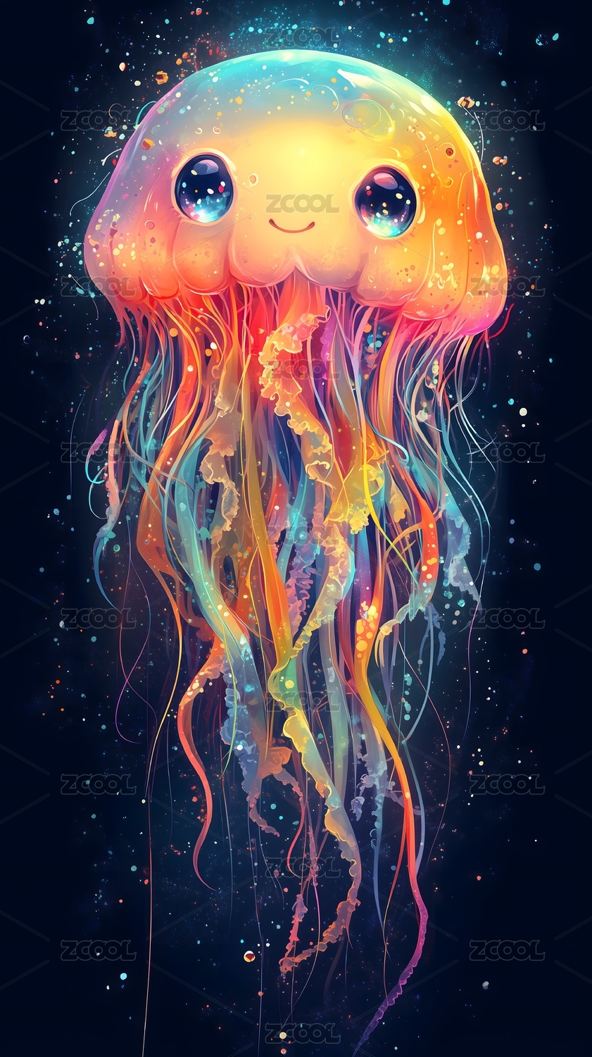 背景, 绘画, 粉色, 梦幻,水母, 可爱, 卡通, 海洋, 插画, 闪光