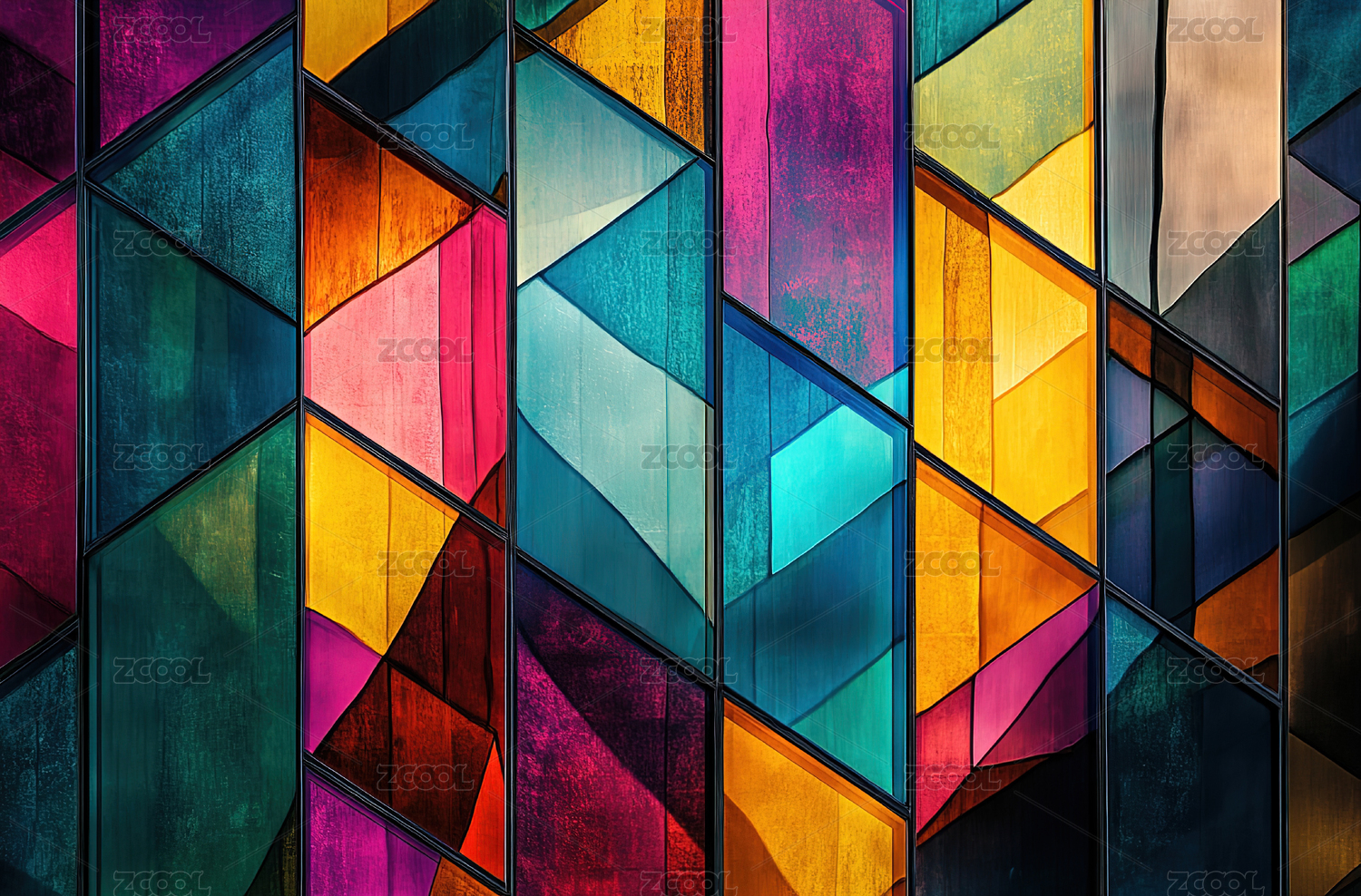 水晶质感,几何图形,玻璃折射,抽象艺术,光影效果,棱镜反射,透明材质,色彩斑斓,立体构成,艺术创作