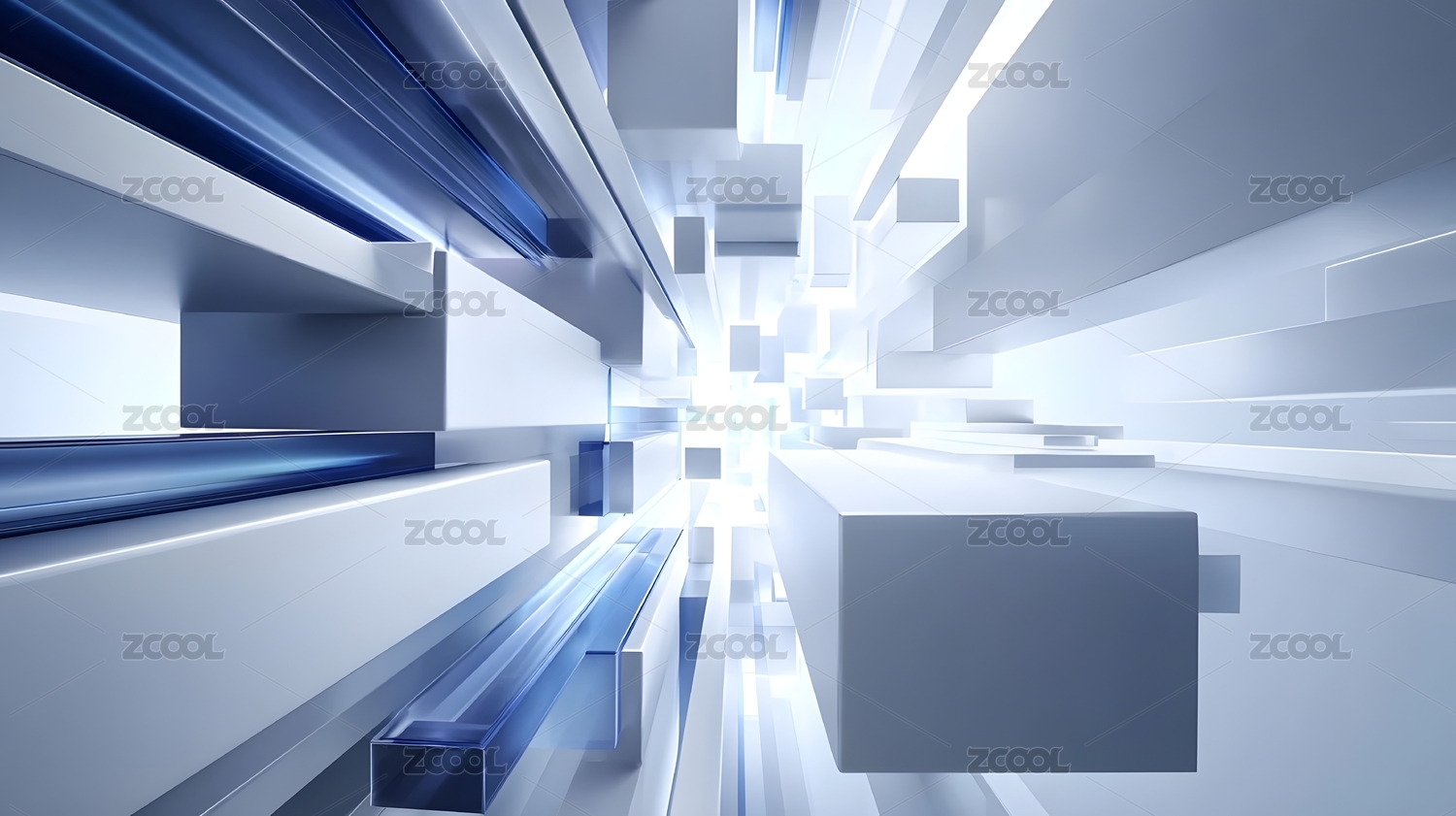 银色立体玻璃条块从中间向四周扩散背景