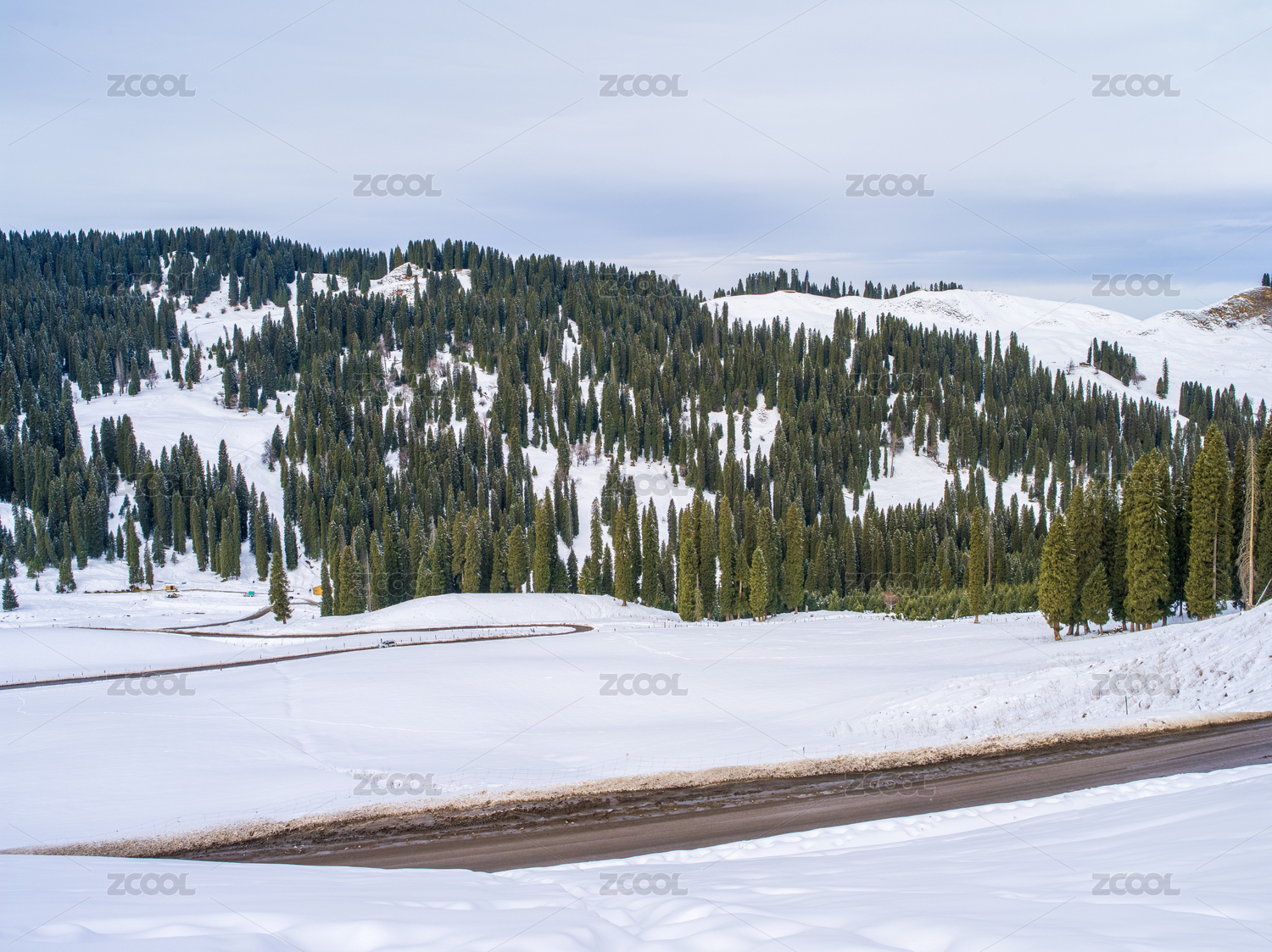 中国新疆伊犁的库尔德宁景区的冬季自然风光