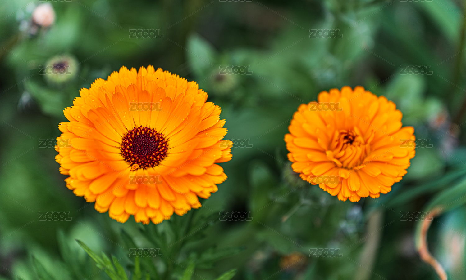 挂满露珠的金黄色花朵金盏菊