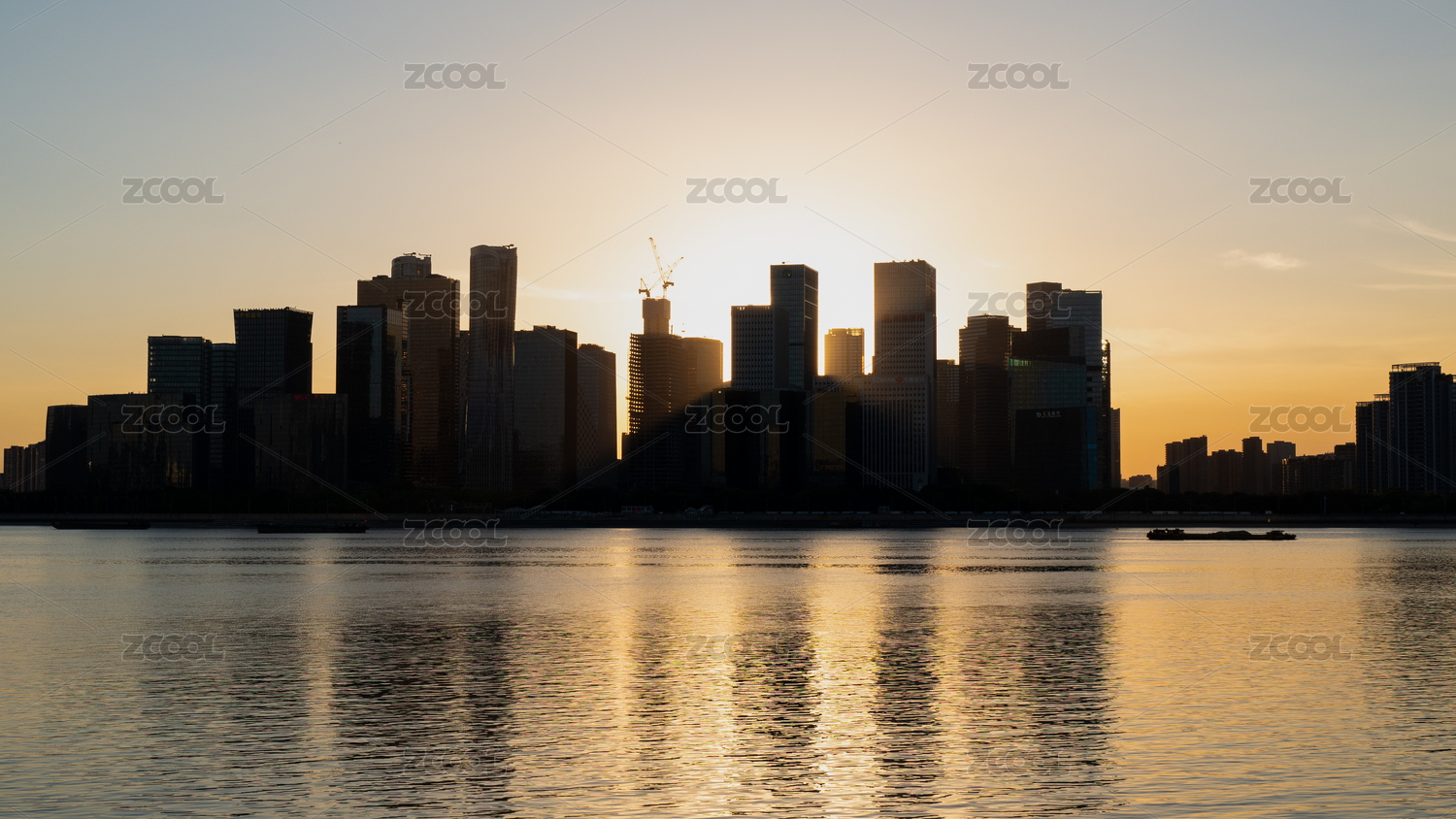 日落黄昏中的杭州钱江新城城市建筑风景剪影