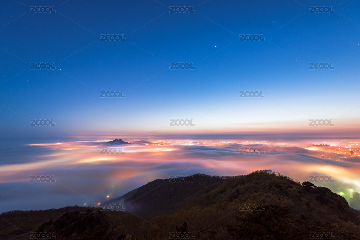 从大黑山俯瞰大连金州云海夜景
