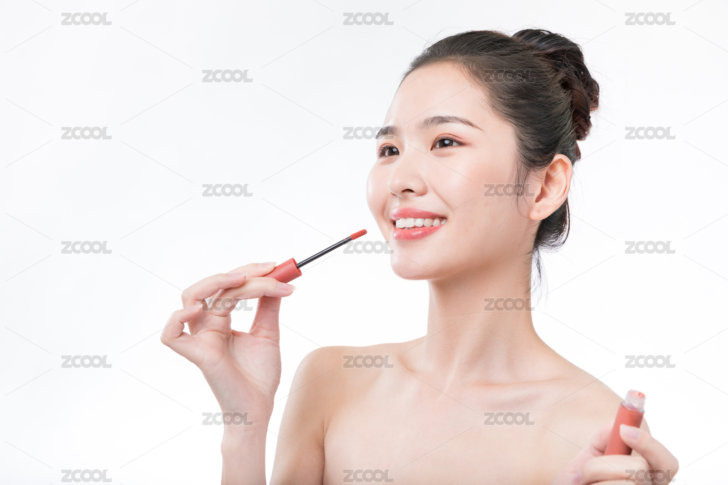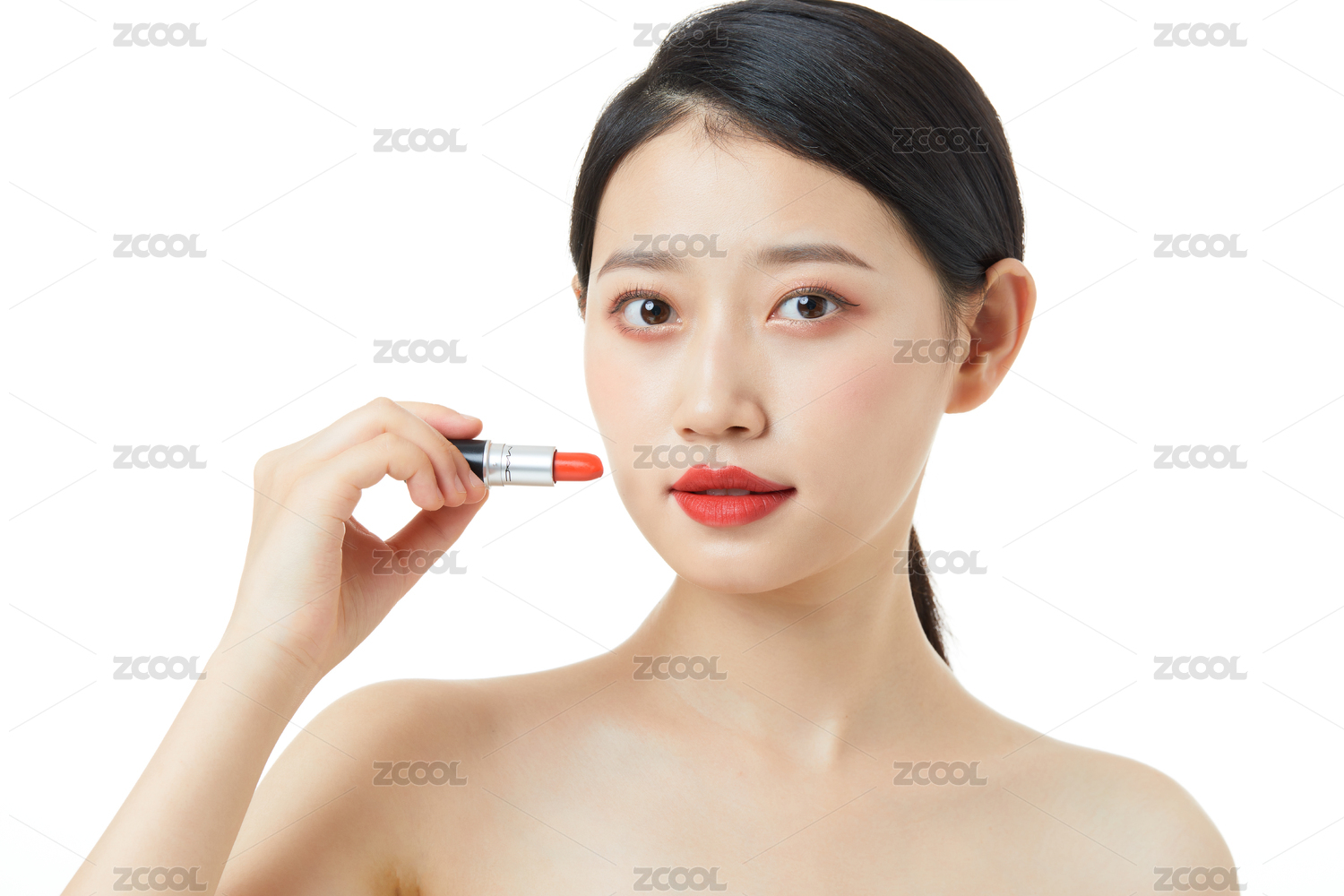 年轻女性涂口红