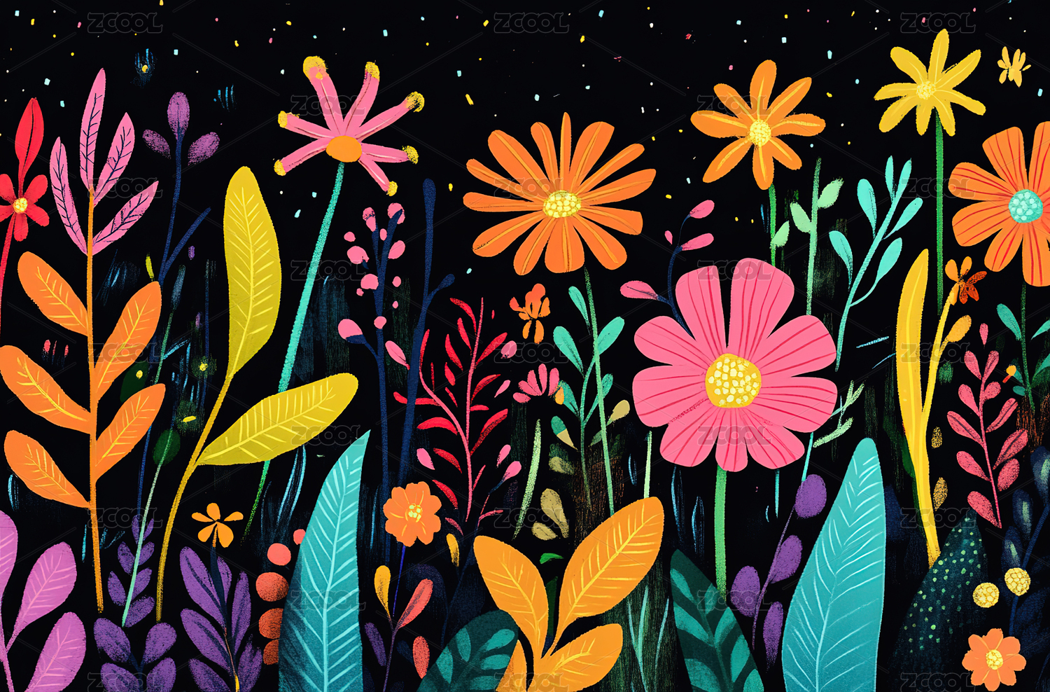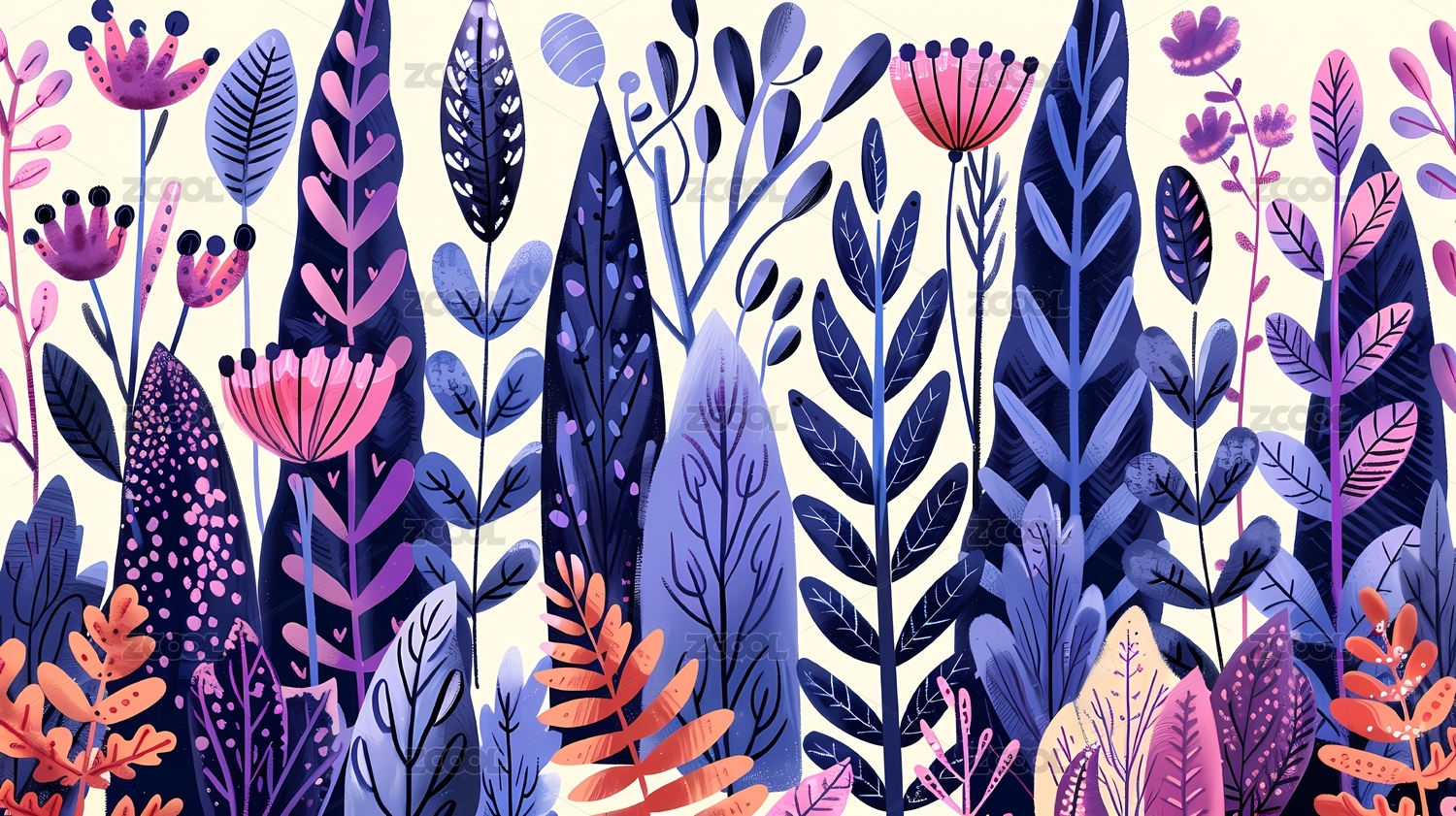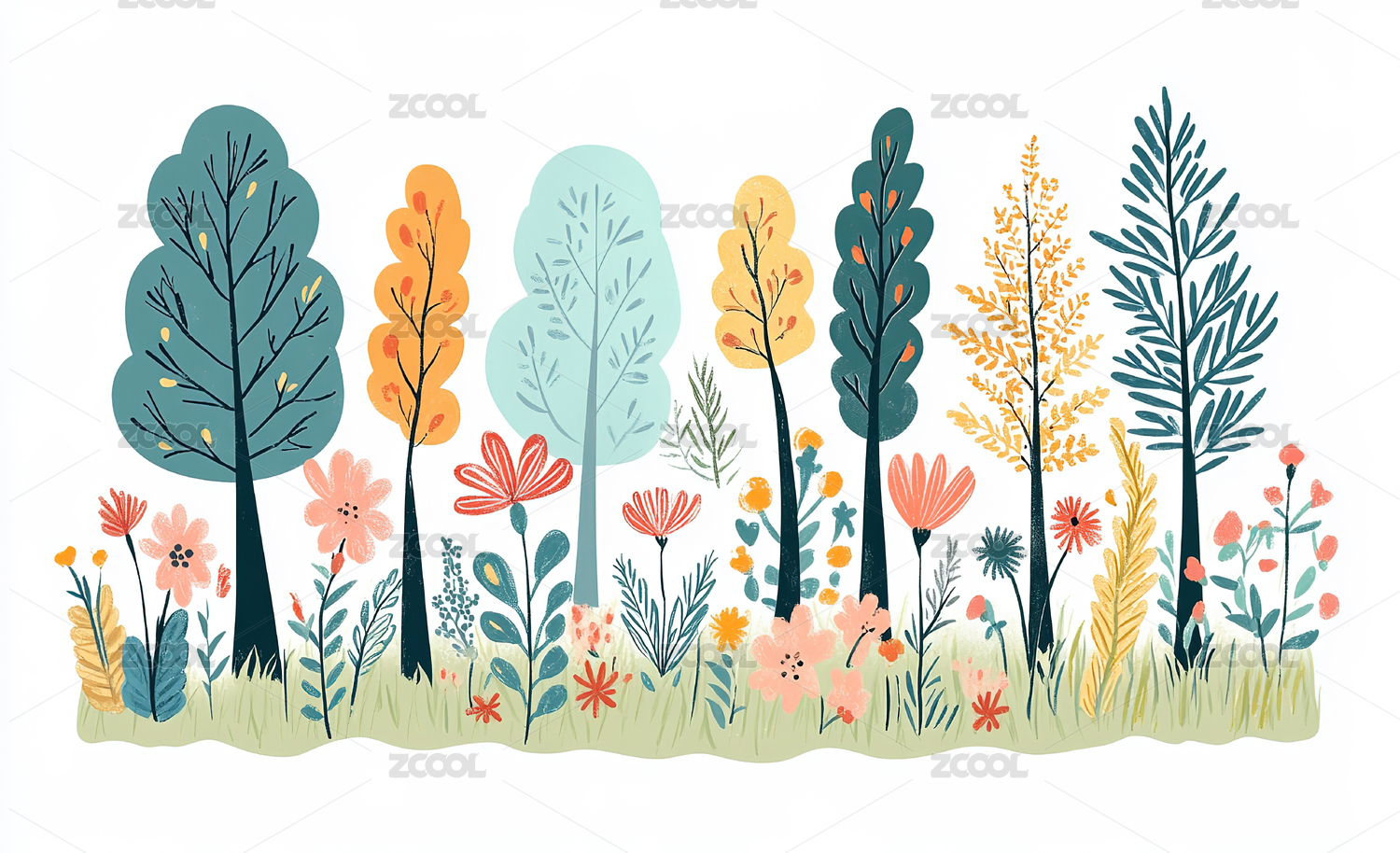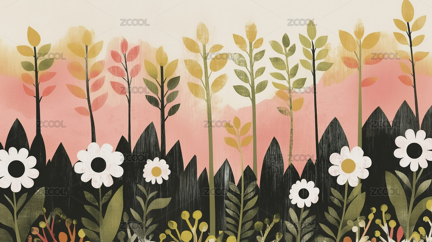 平面肌理插画花丛