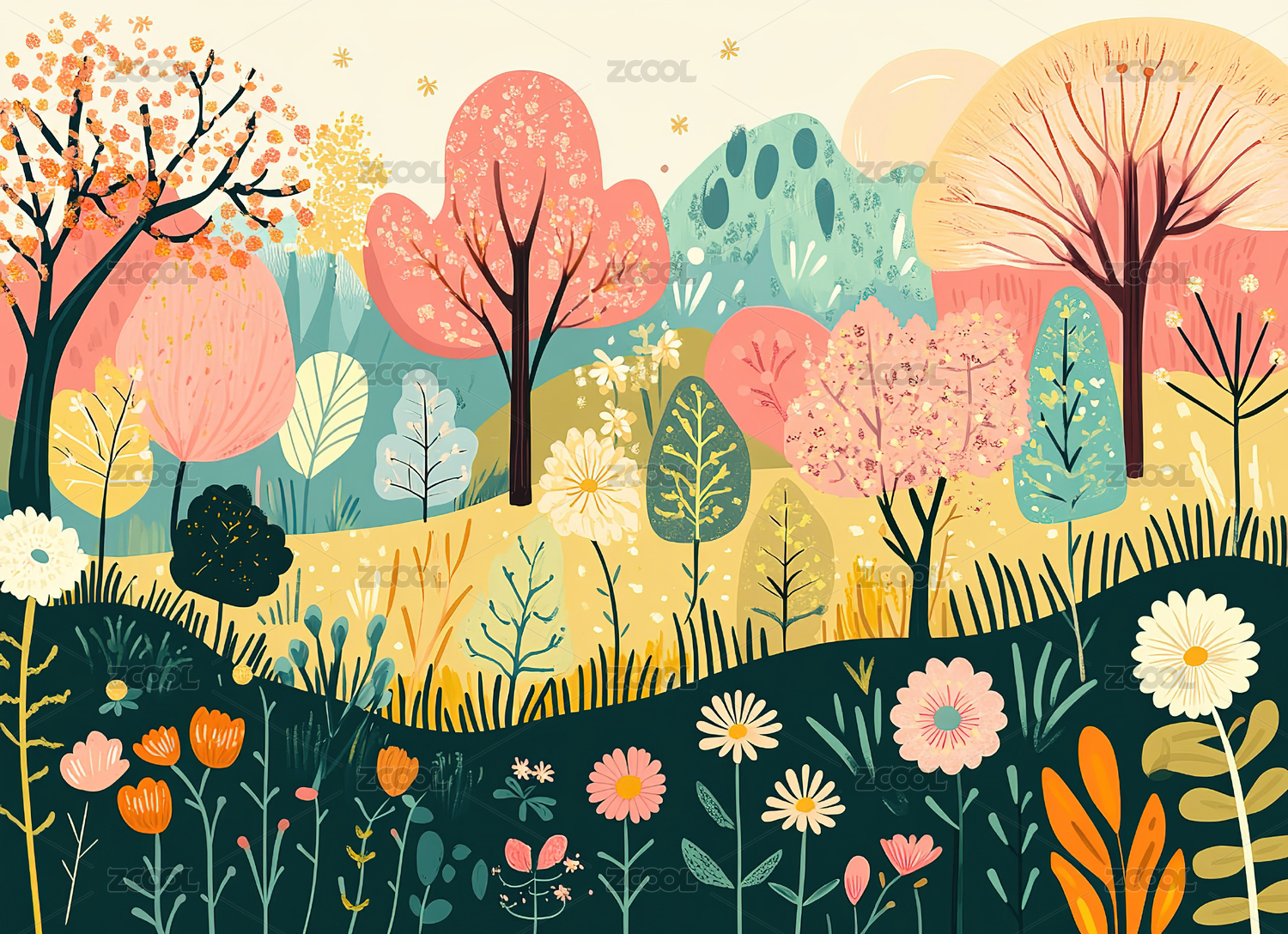 彩色草地抽象插画海报背景