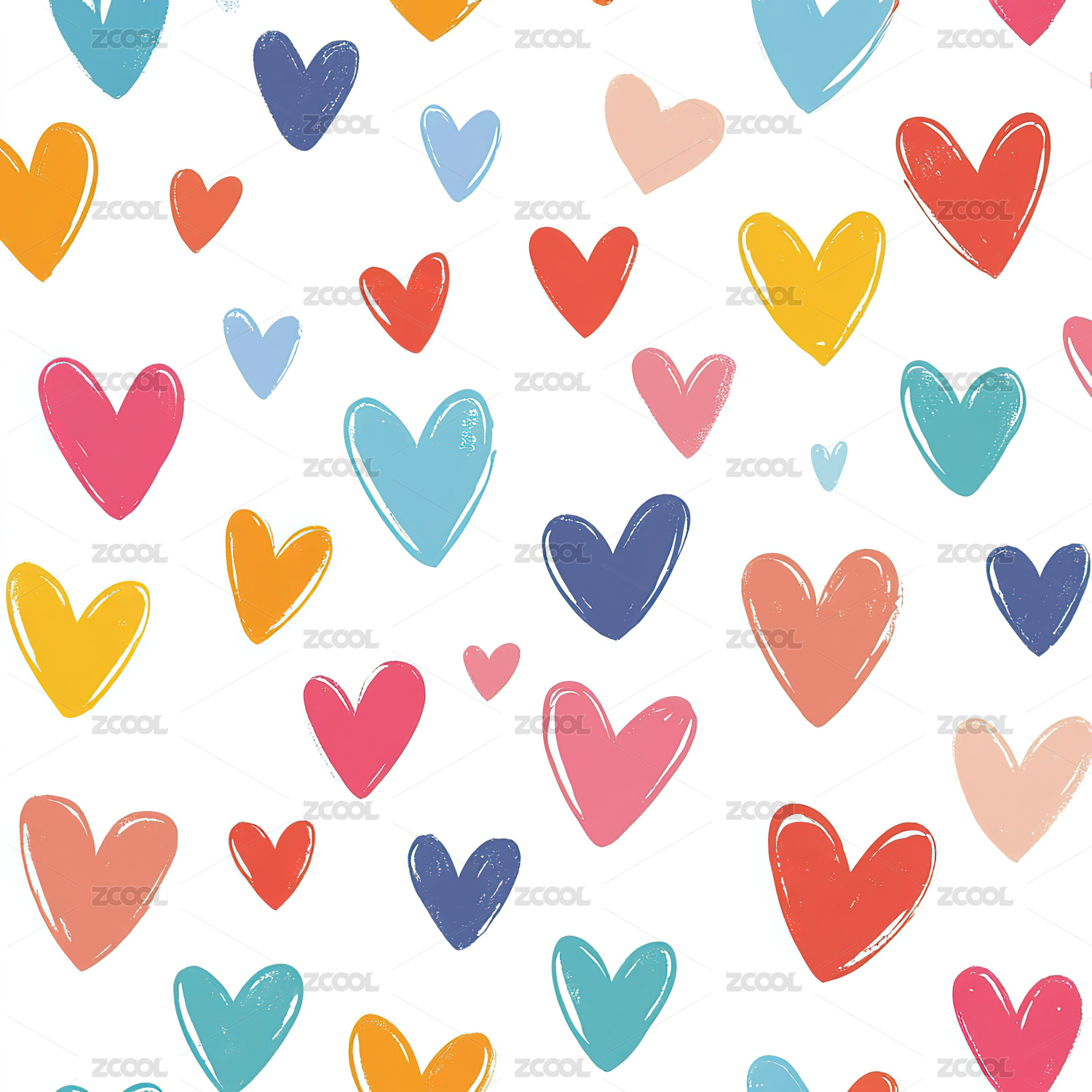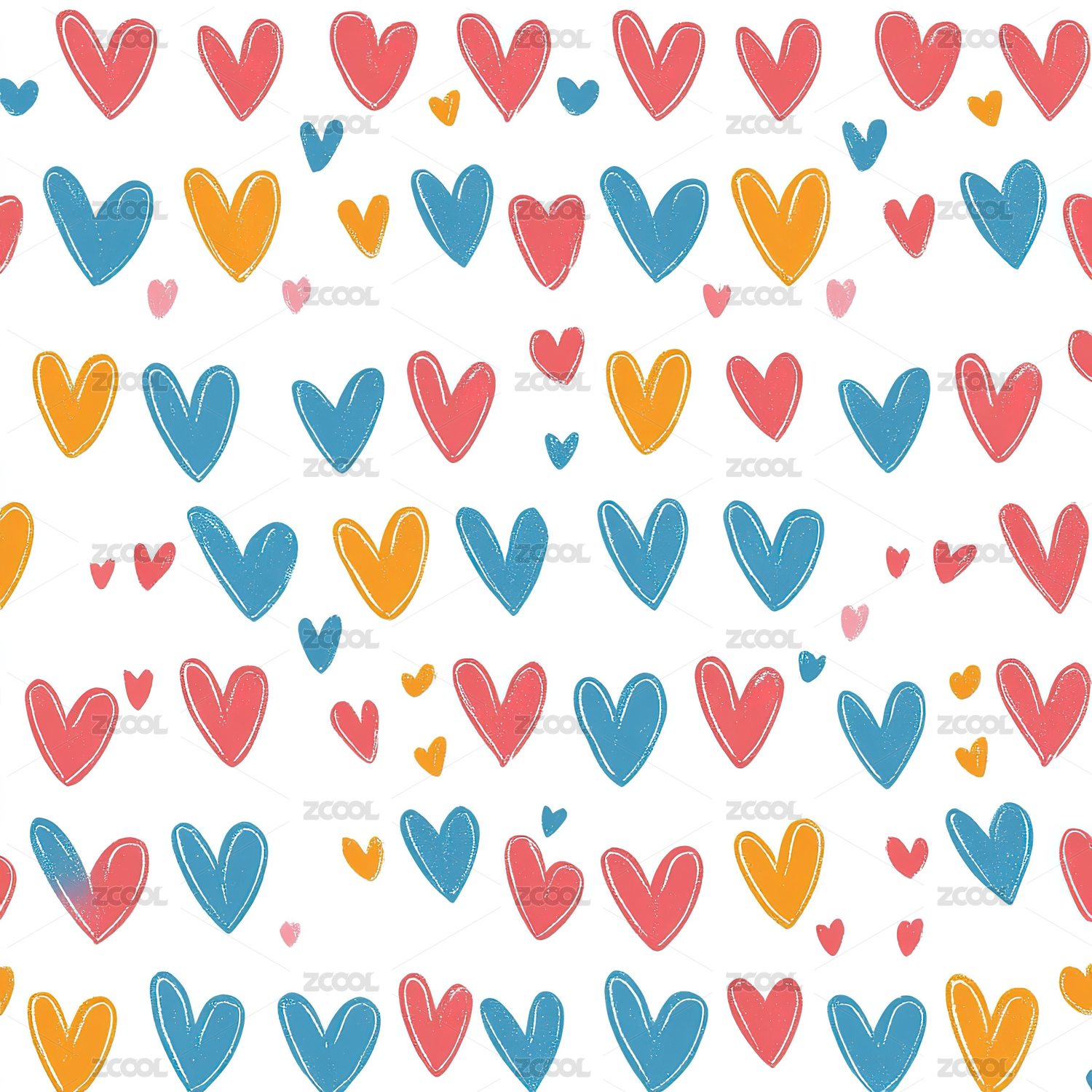 手绘蜡笔涂鸦爱心无缝平铺背景