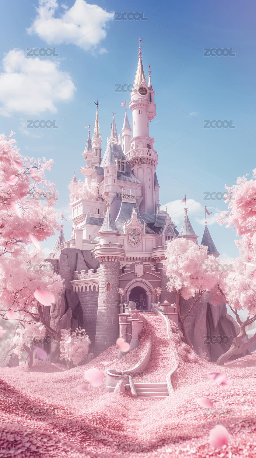 粉色的梦幻卡通城堡场景