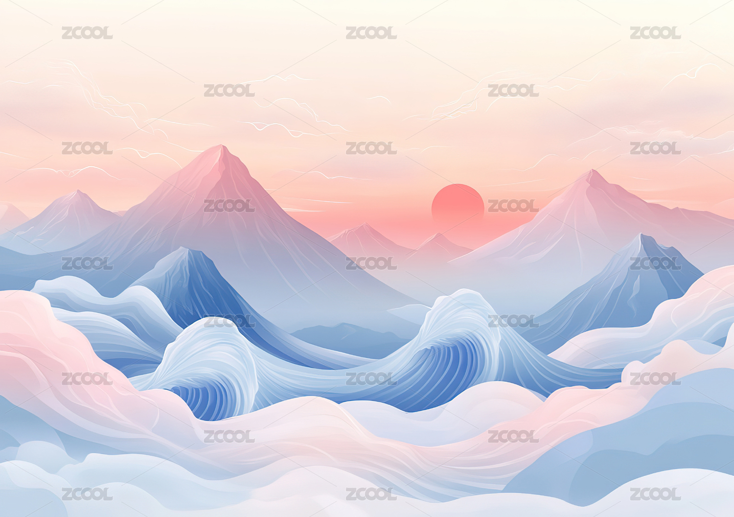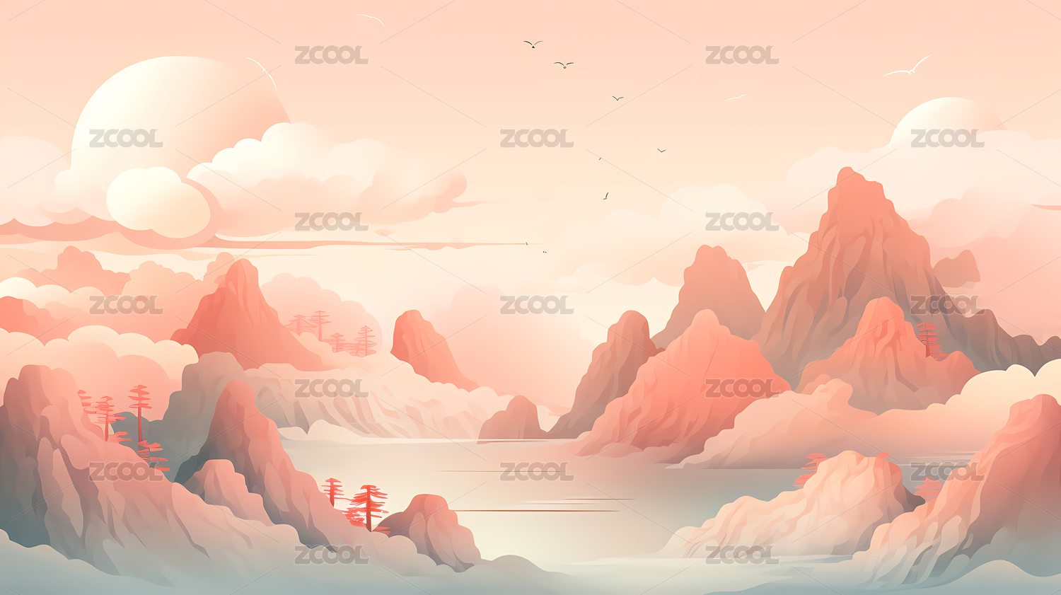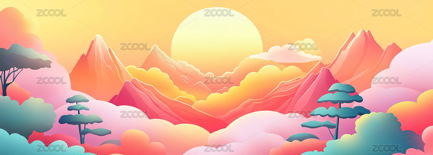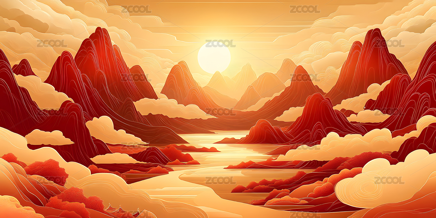 国潮山水风景插画背景