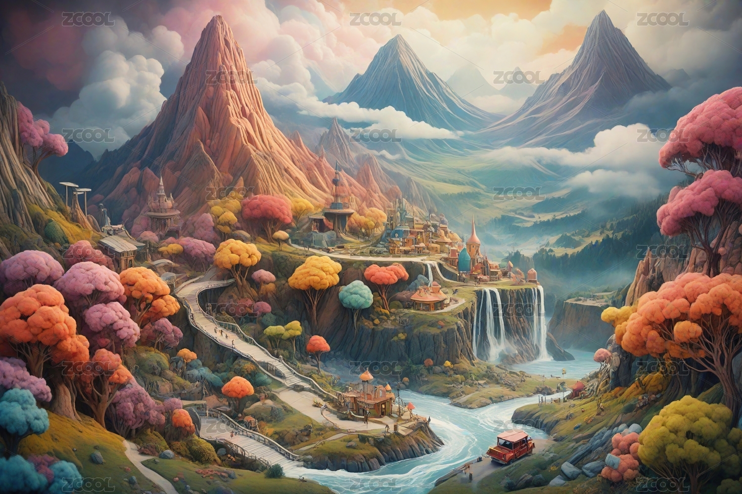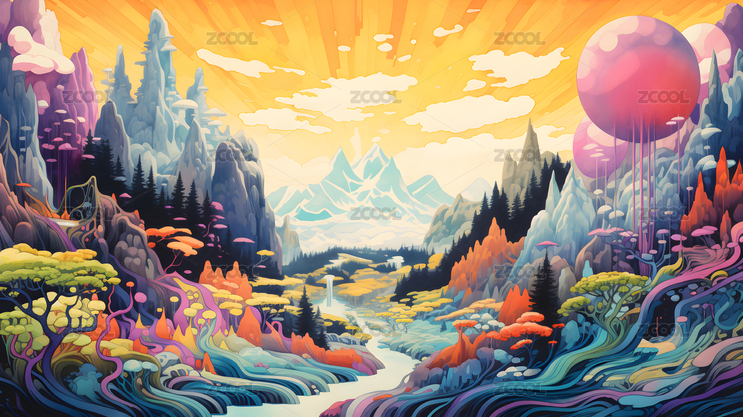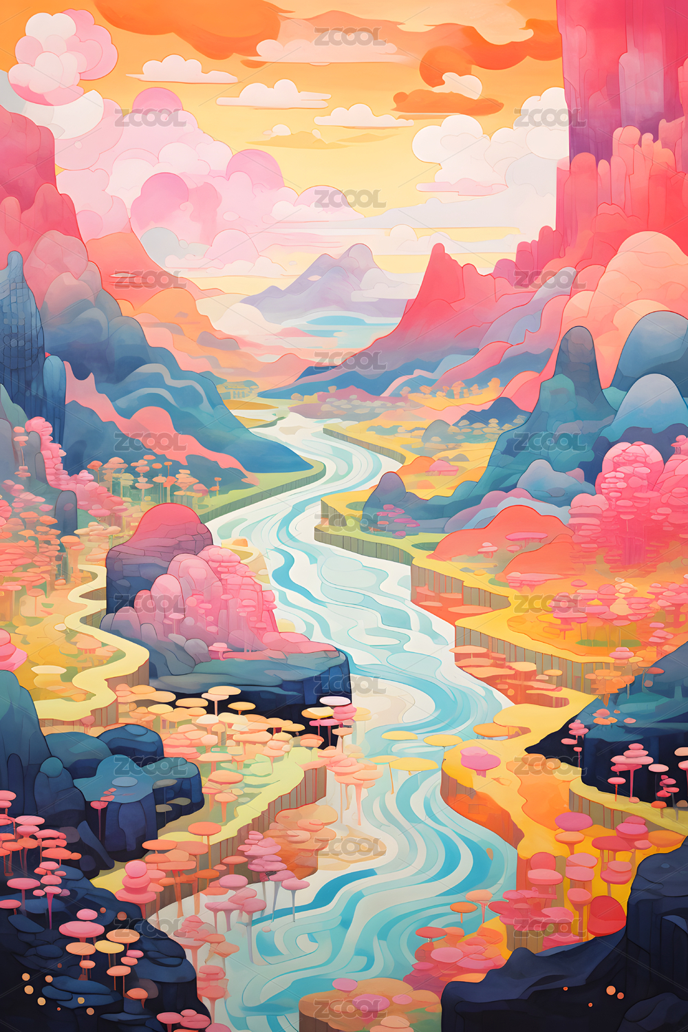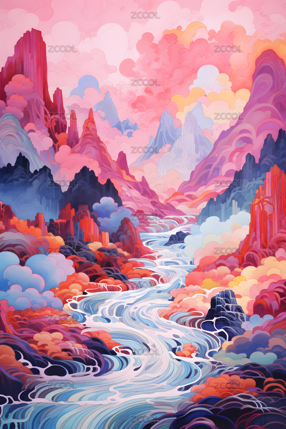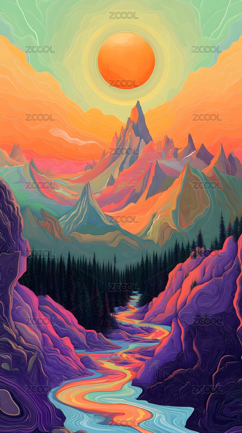 艺术品,多彩,设计,风景,山峦,山,水彩,插画,装饰画,装饰