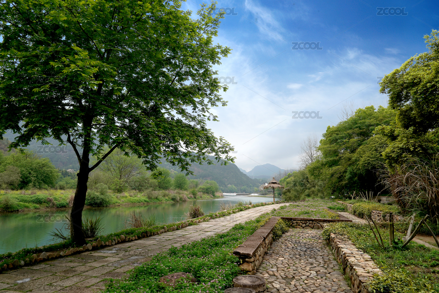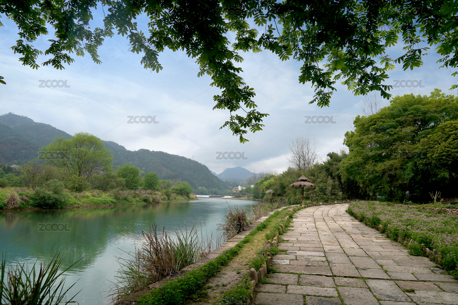 中国安徽绩溪古镇古建筑和河流的自然风光