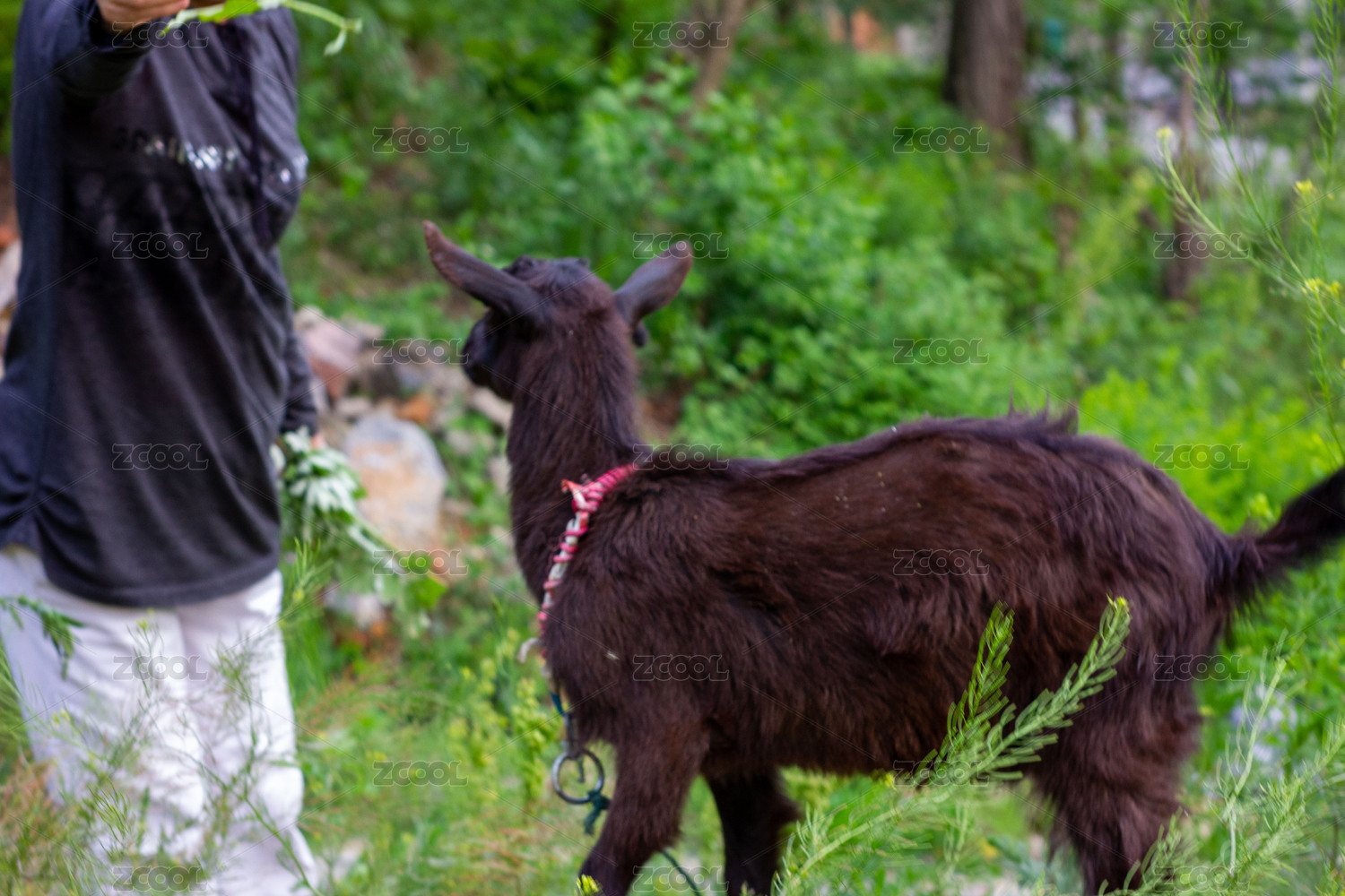 一只小黑山羊在山里四处张望