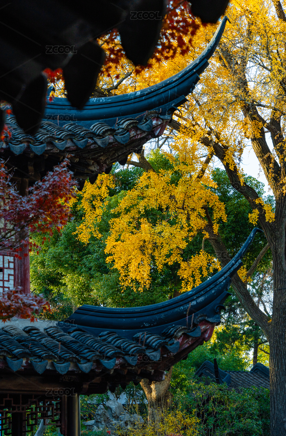 江苏省无锡市锡惠胜境寄畅园建筑和枫叶秋色