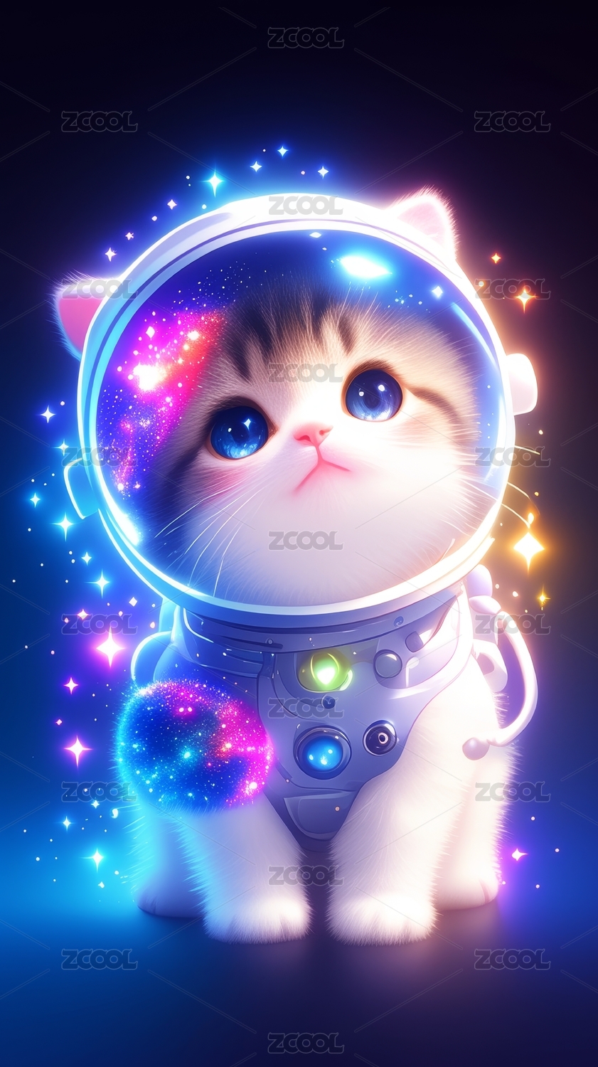 可爱,宇宙,宇航员,探险,星球,星系,漂浮,猫,猫咪,神秘