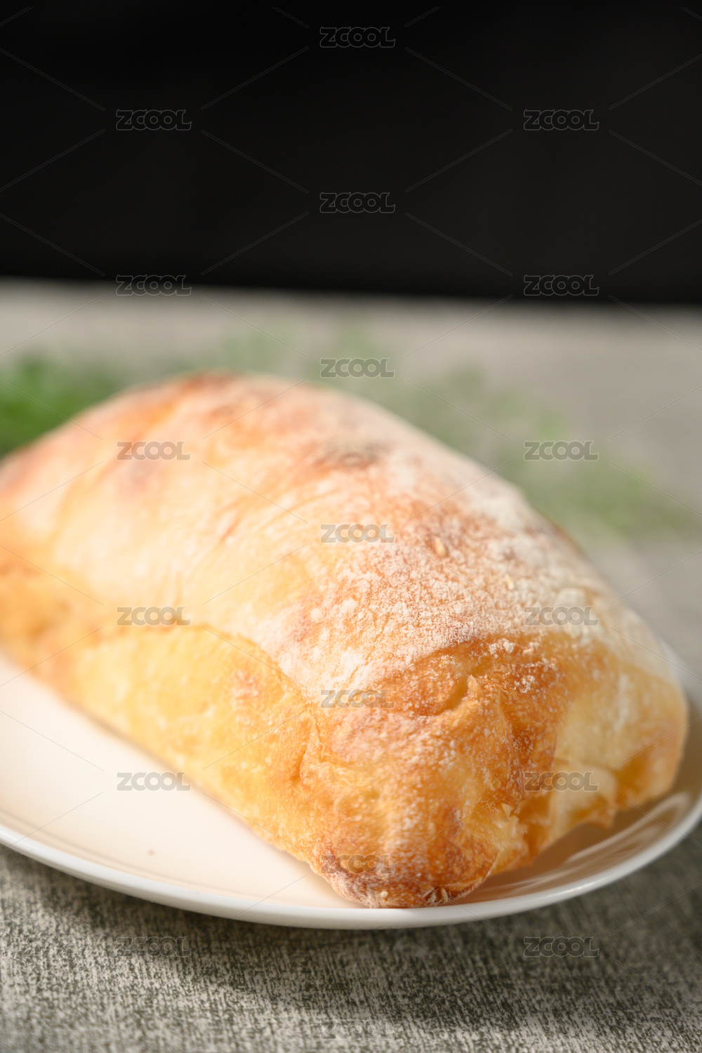 桌面上的盘子里的美味可口的恰巴塔面包