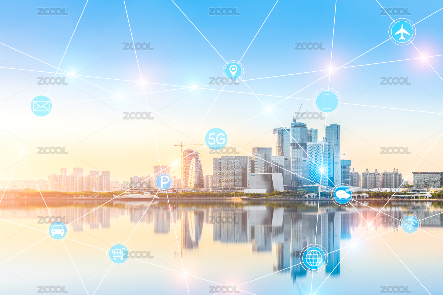 广州现代智慧城市5G技术互联网智能通讯概念