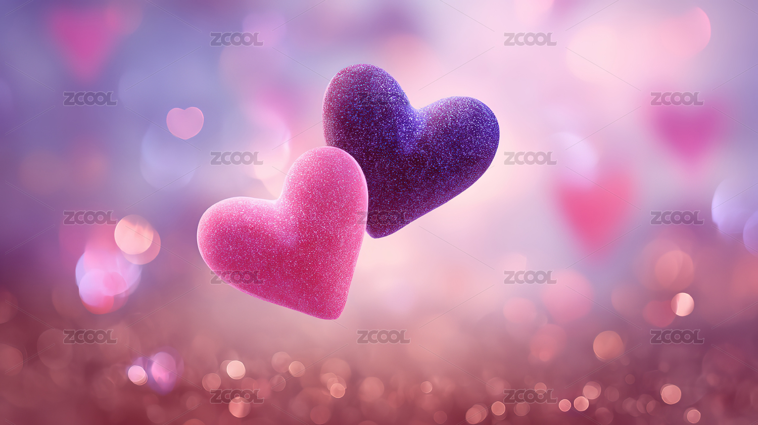 两颗爱心依偎在一起
