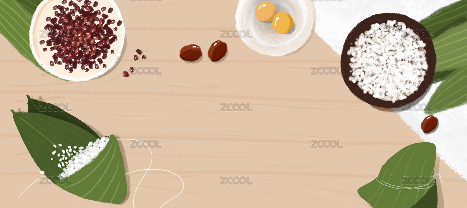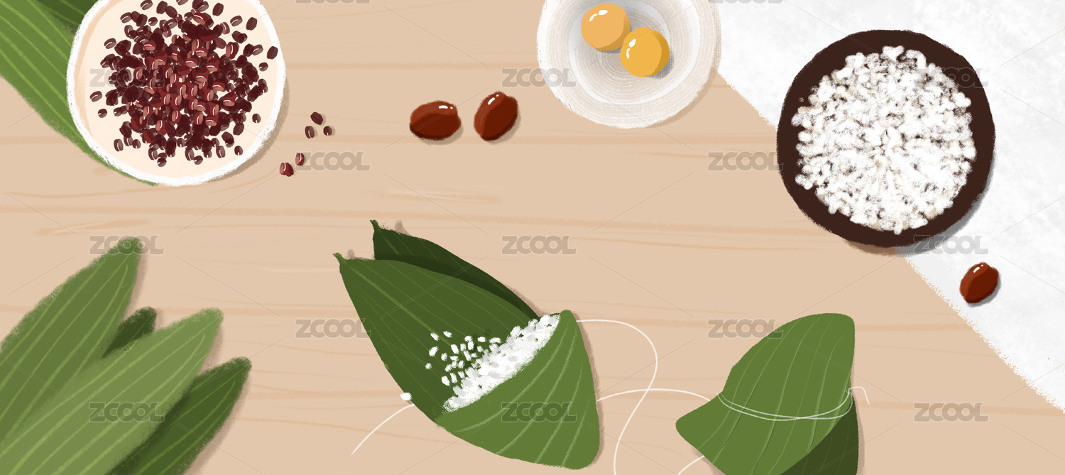 端午节包粽子和糯米红枣红豆鸭蛋插画竖版