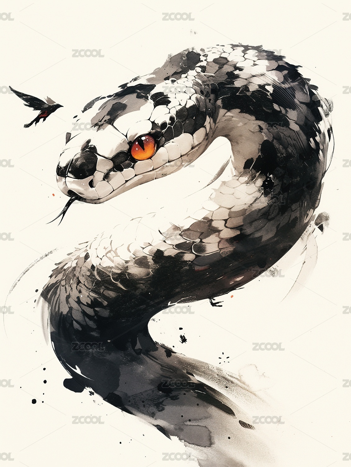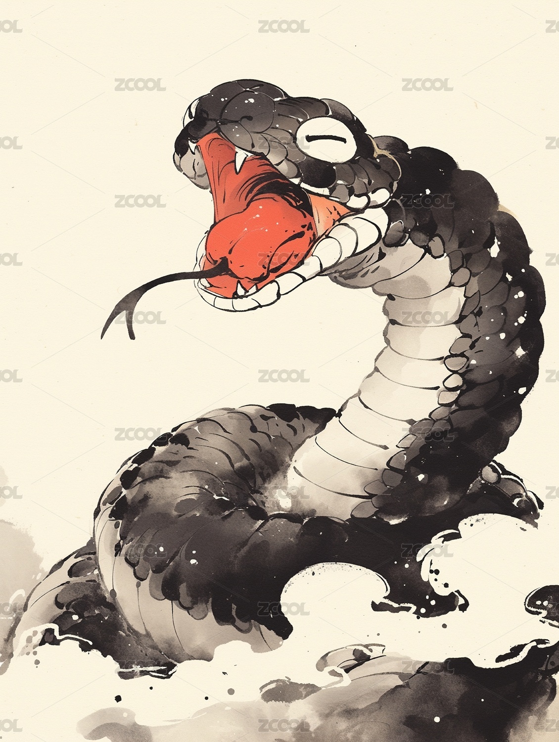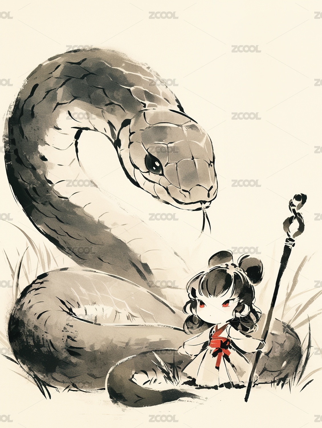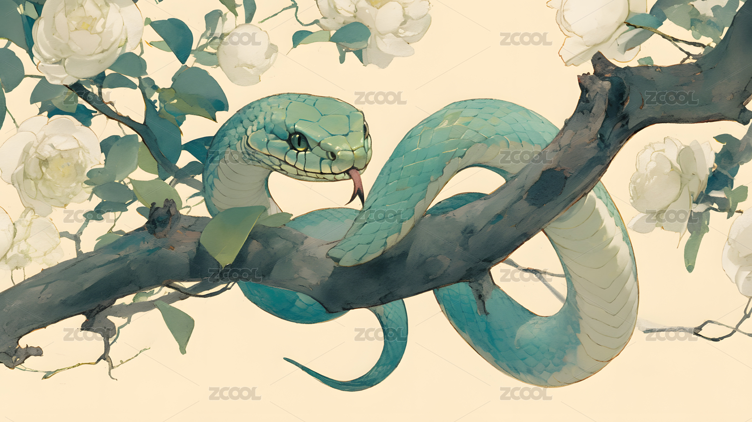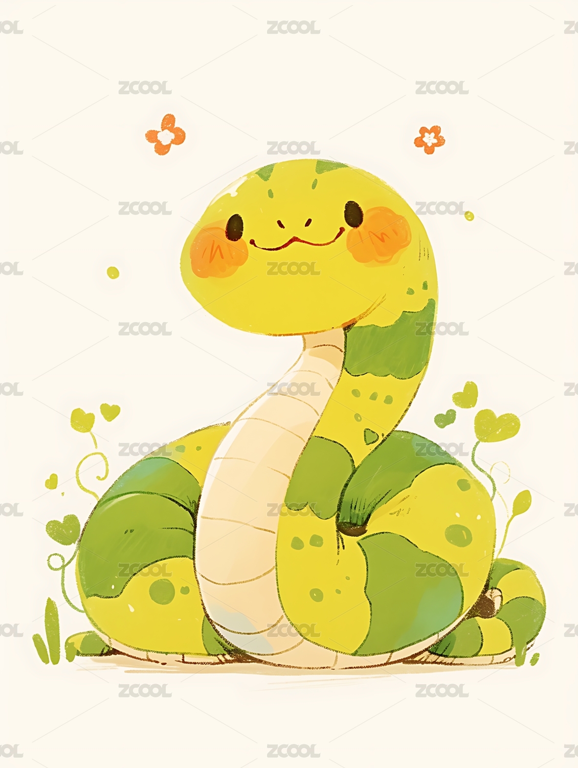 动物,可爱的,蛇,新年,春节,插画,蛇年,三维,3D,水彩