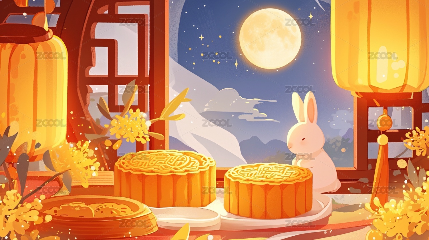 季节,满月,桂花,中秋节,月亮,国潮,国风,节日,传统,中国