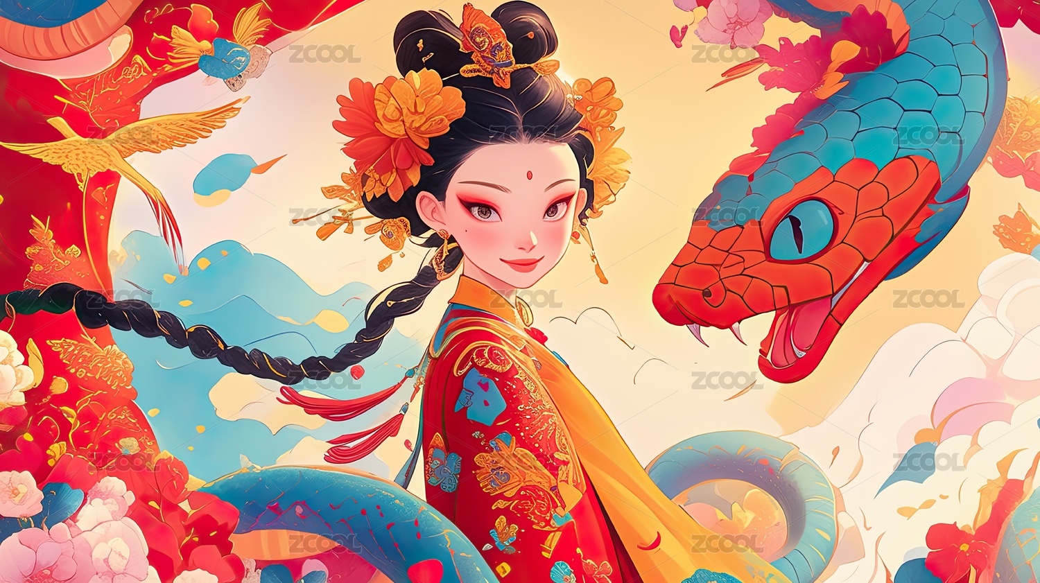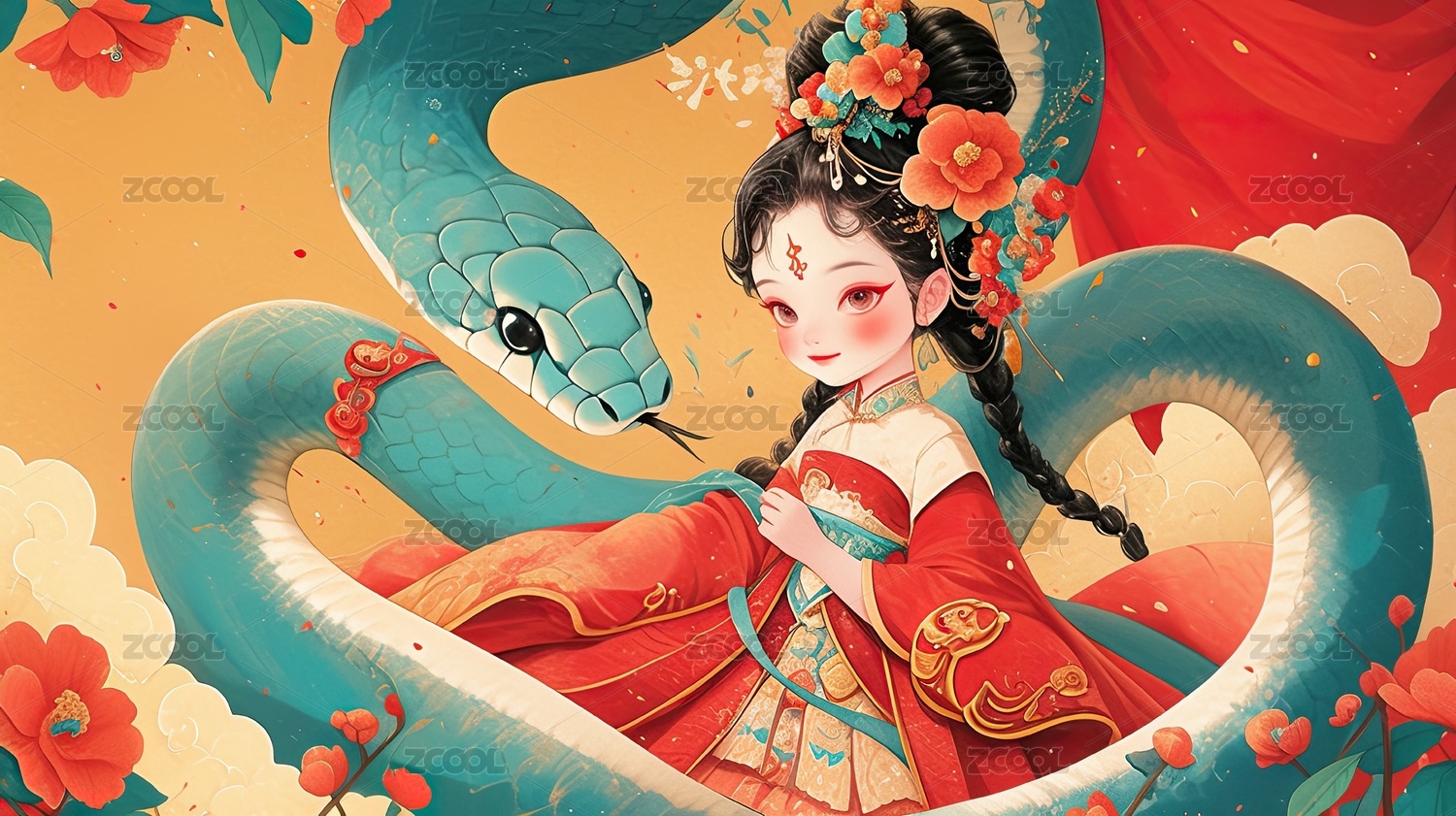 动物,自然,春节,新年,生肖,庆祝,礼物,灯笼,女孩,快乐