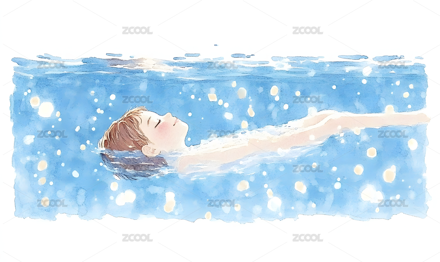女孩游泳水彩插画