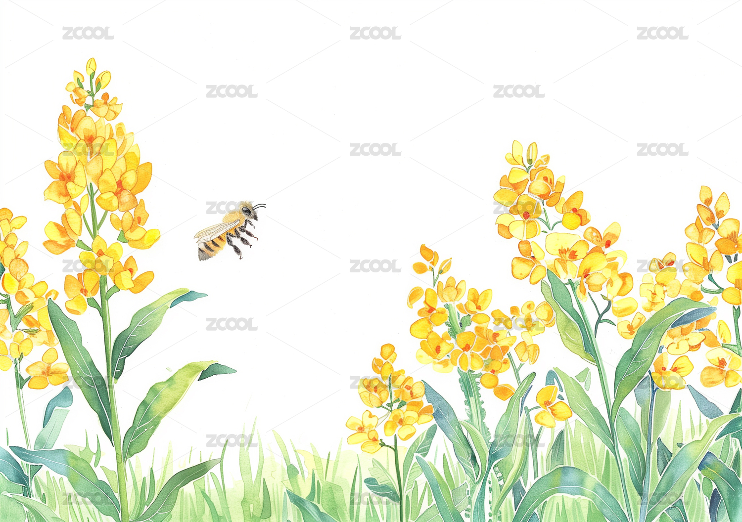 惊蛰春天二十四节气油菜花蜜蜂矢量插画