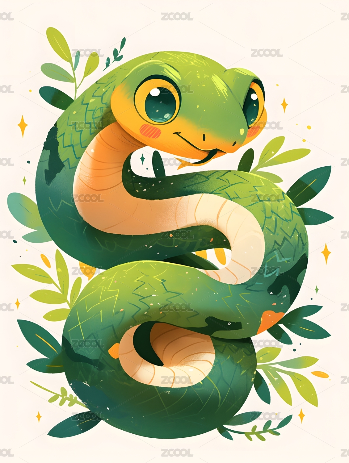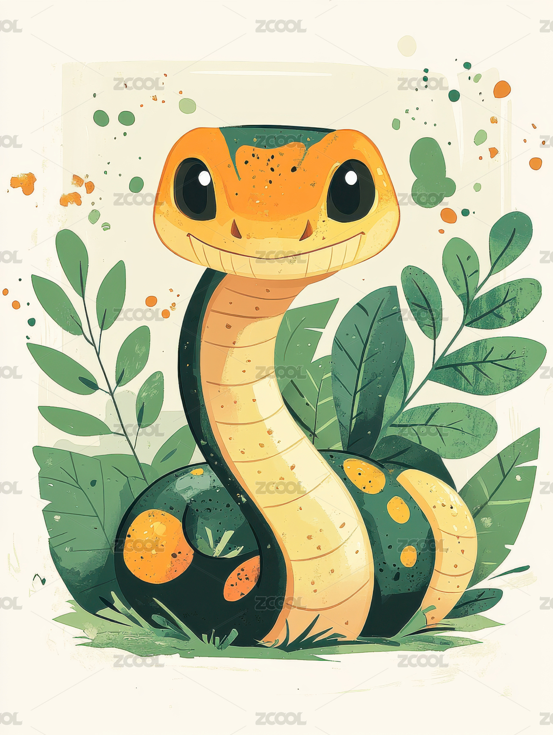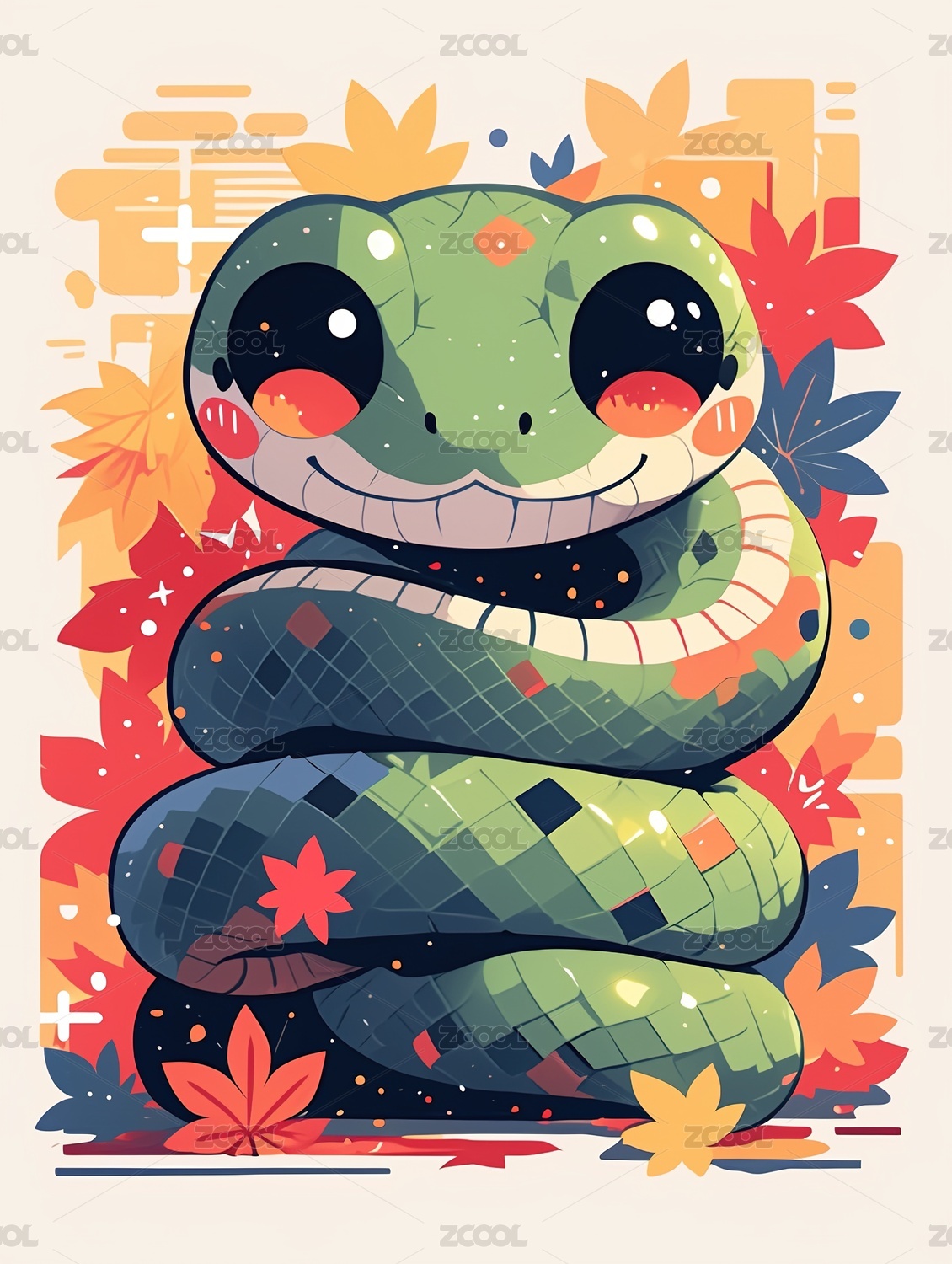 卡通蛇年2025生肖蛇T恤图案印花插画