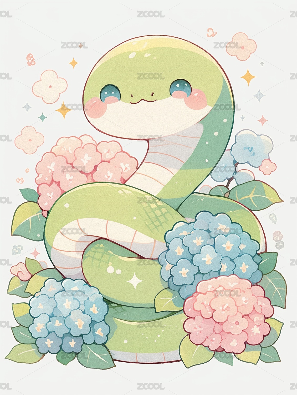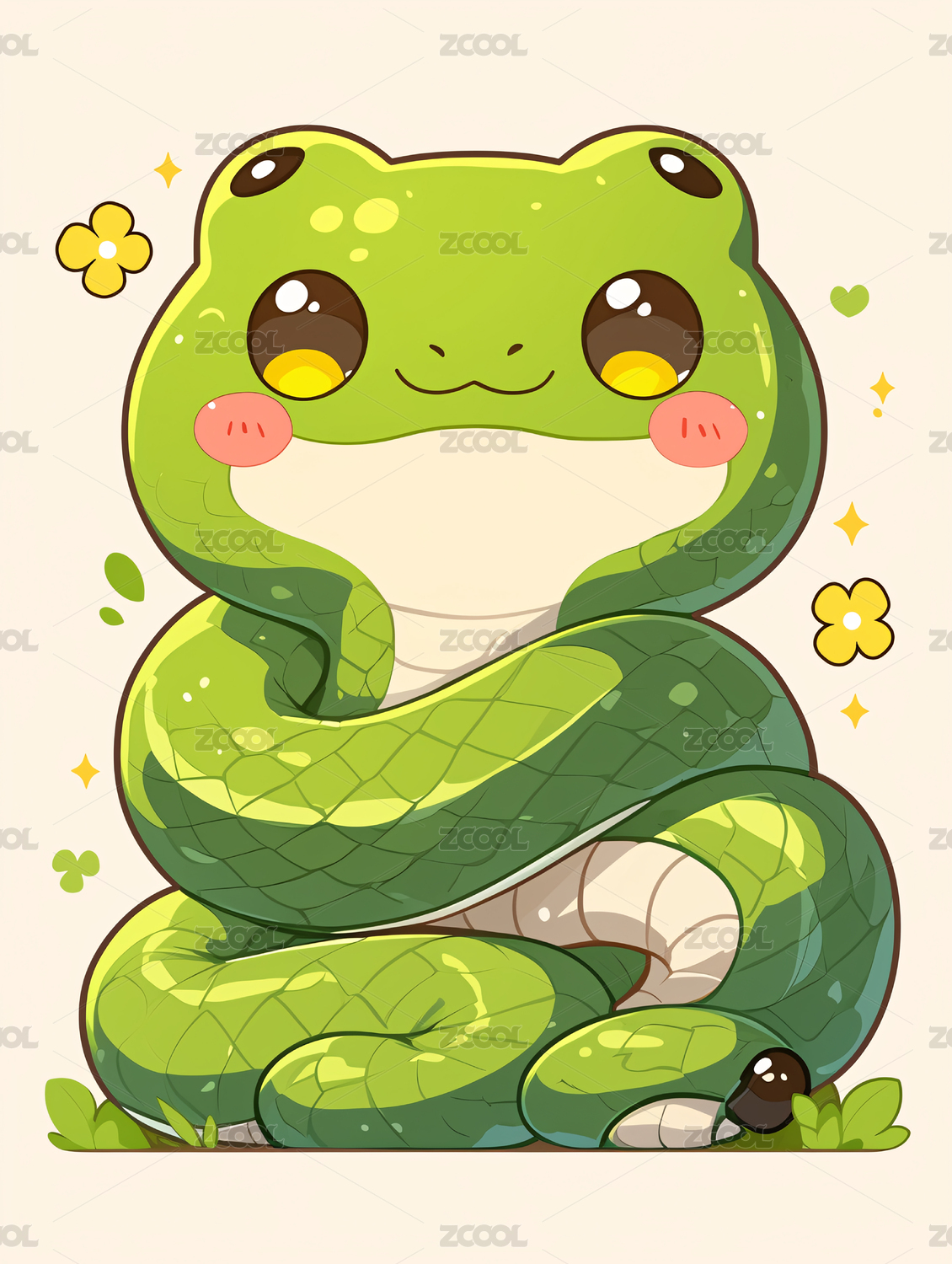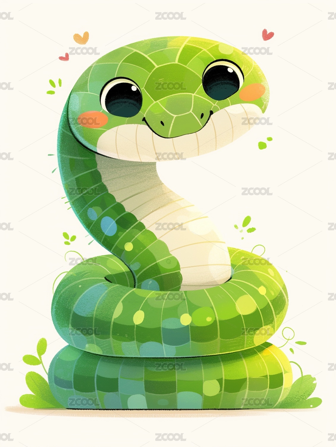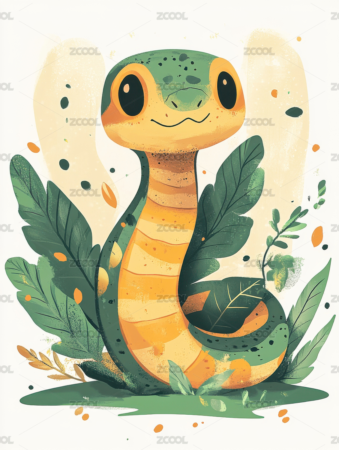 卡通蛇年2025生肖蛇T恤图案印花插画