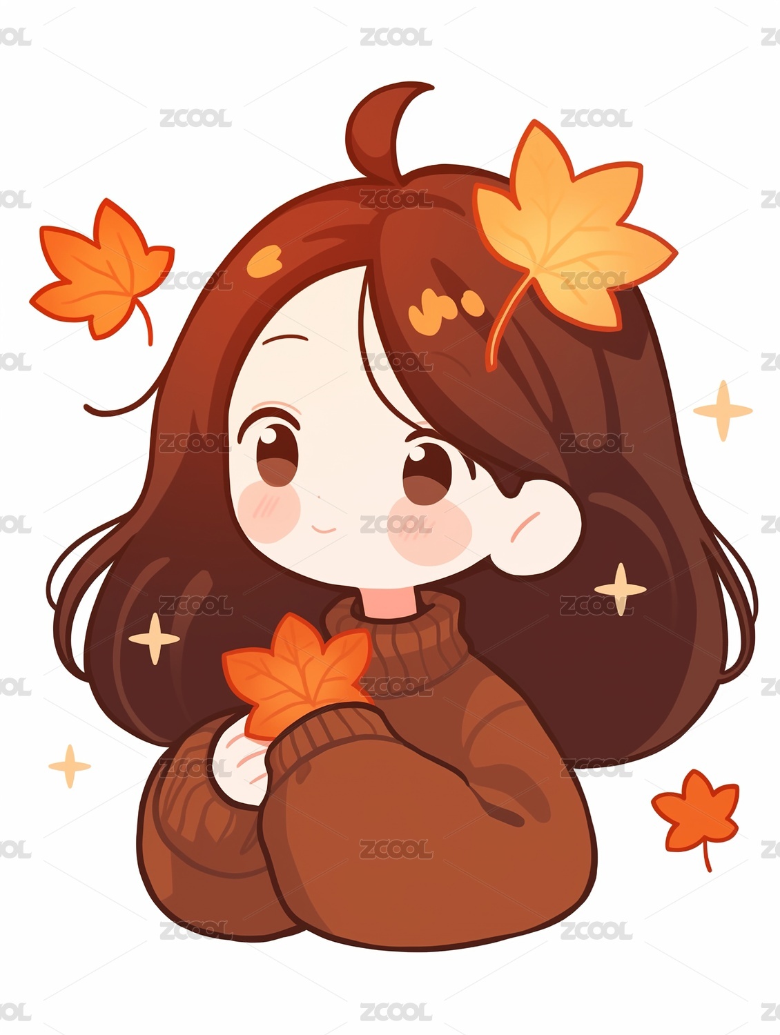 扁平风小清新女孩卡通表情可爱女生角色插画