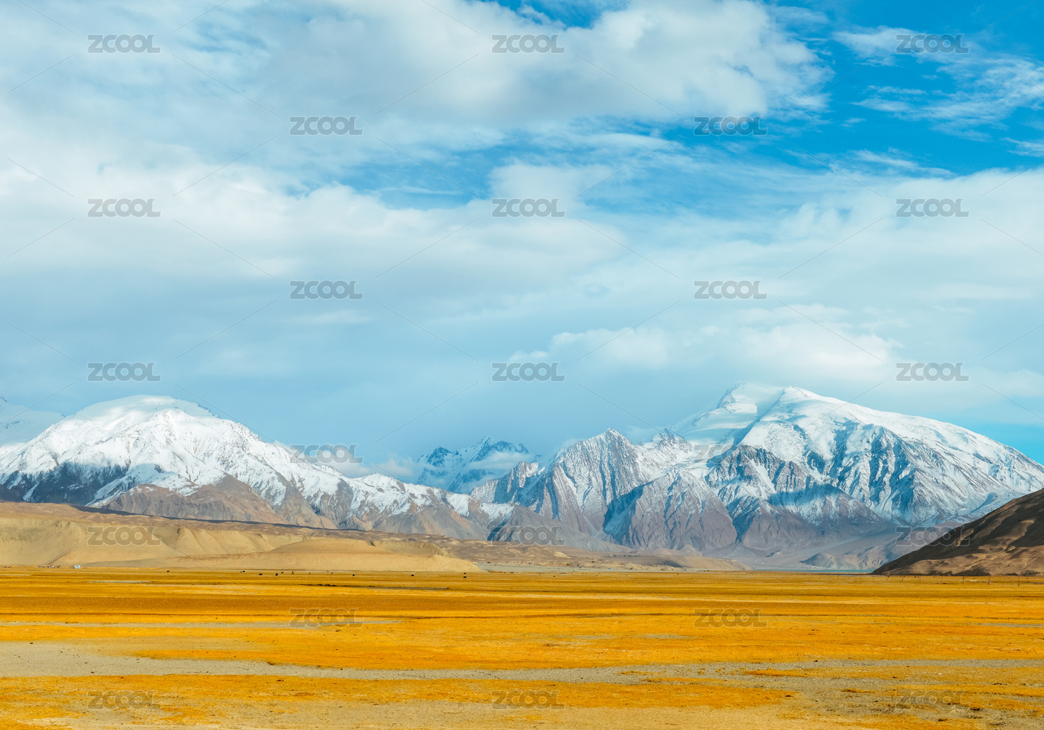 中国新疆314国道木吉湿地远看慕士塔格峰风景