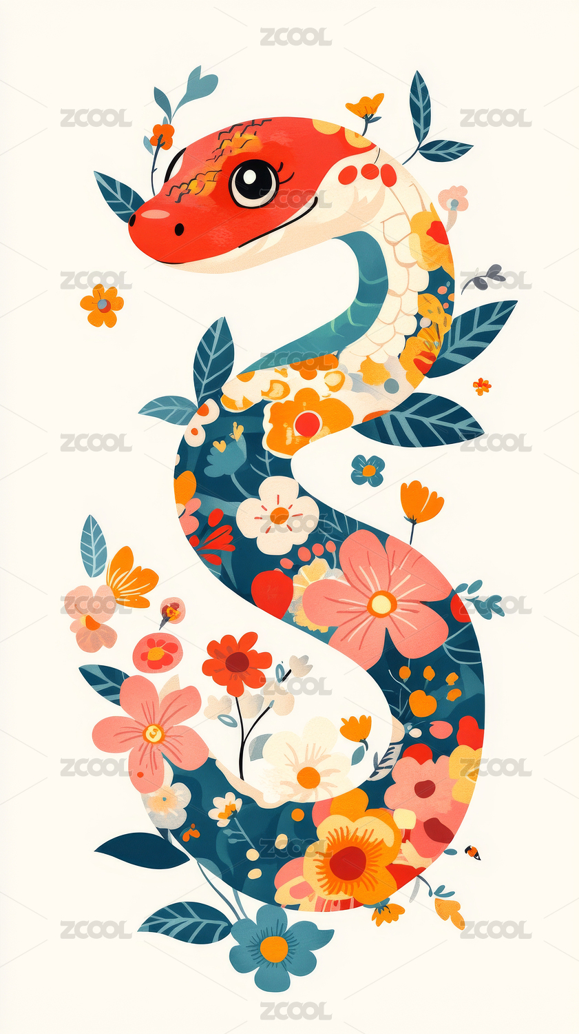 蛇年花卉艺术插画