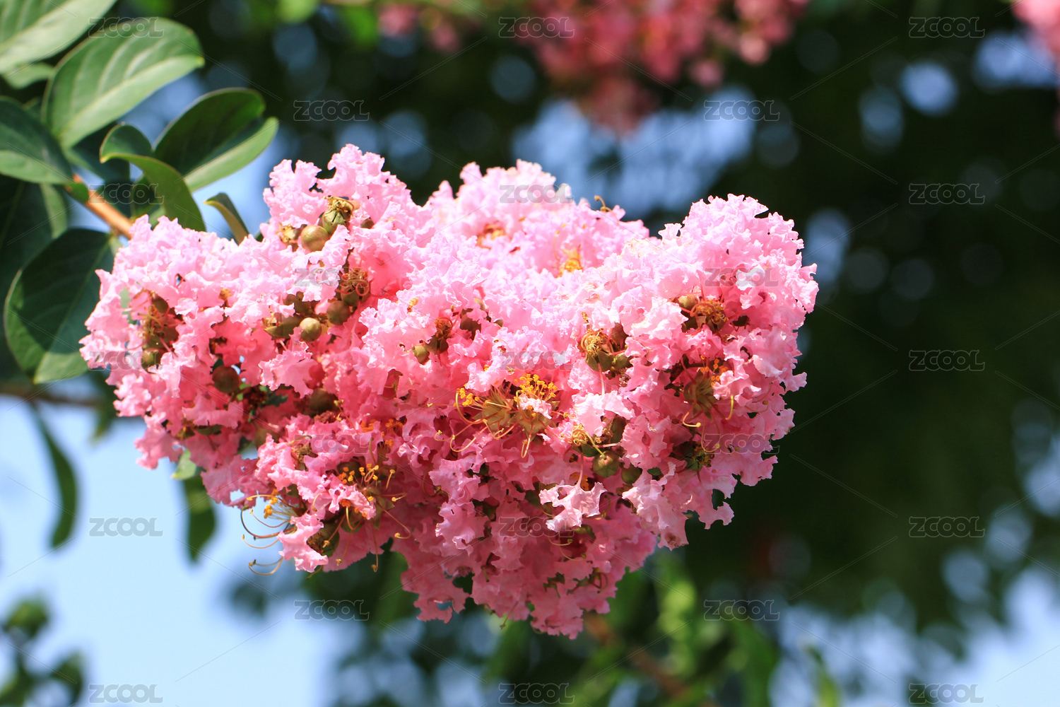 粉色,清新,植物,花头,叶子,花簇,夏天,紫薇,夏季,绿化