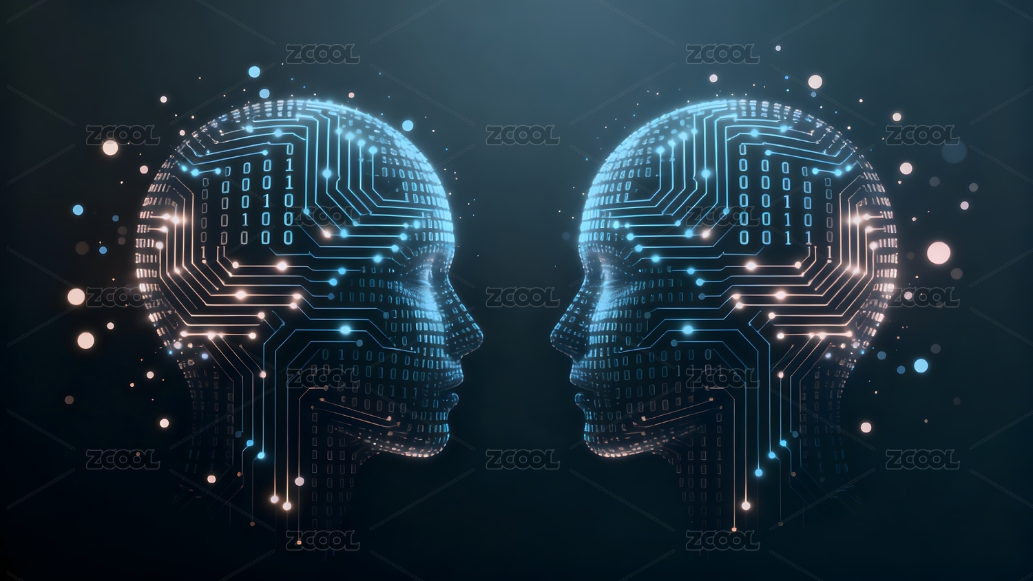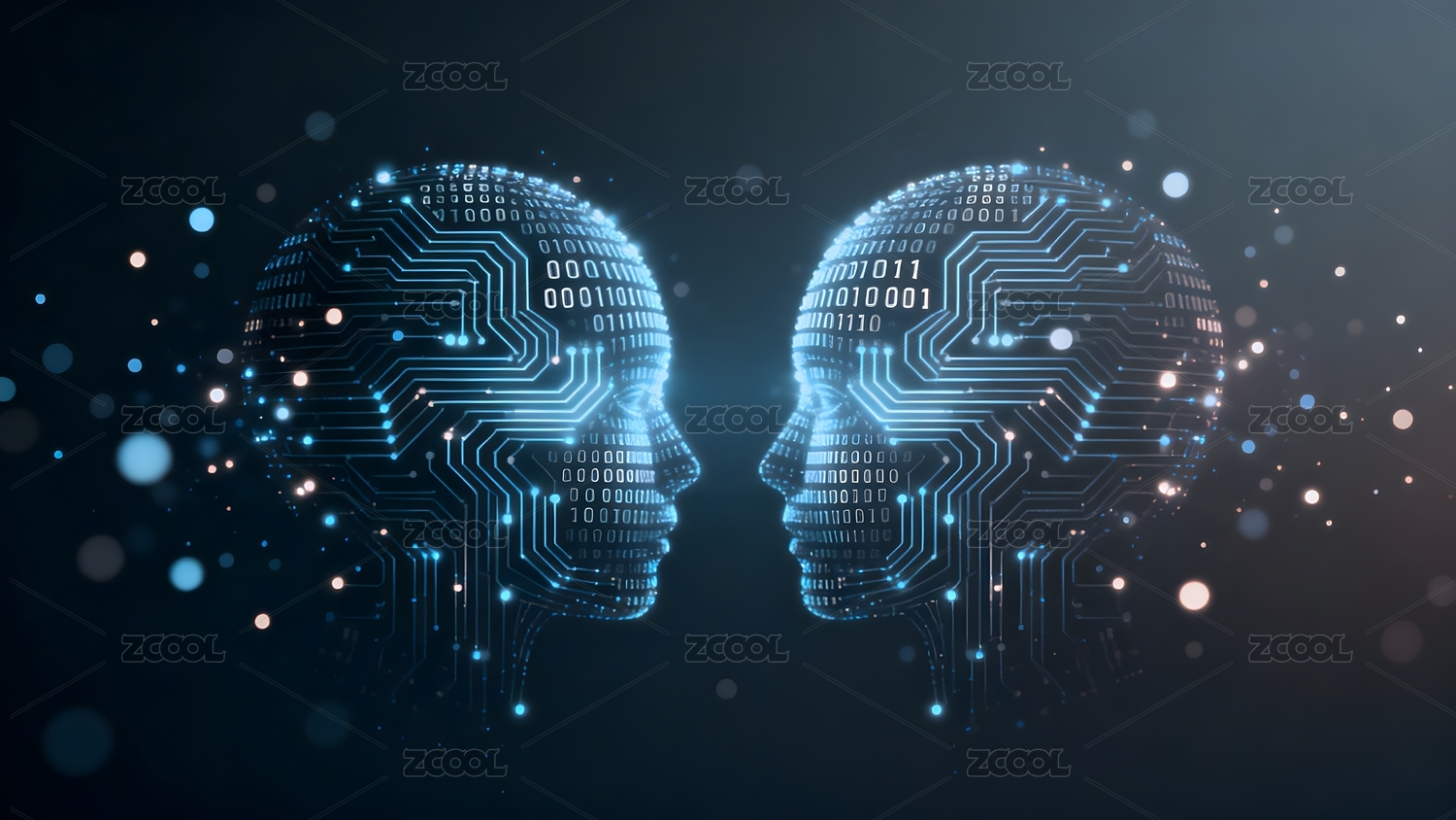 全息,粒子,人像,对视,脸,头,科技,科幻,未来,脑机