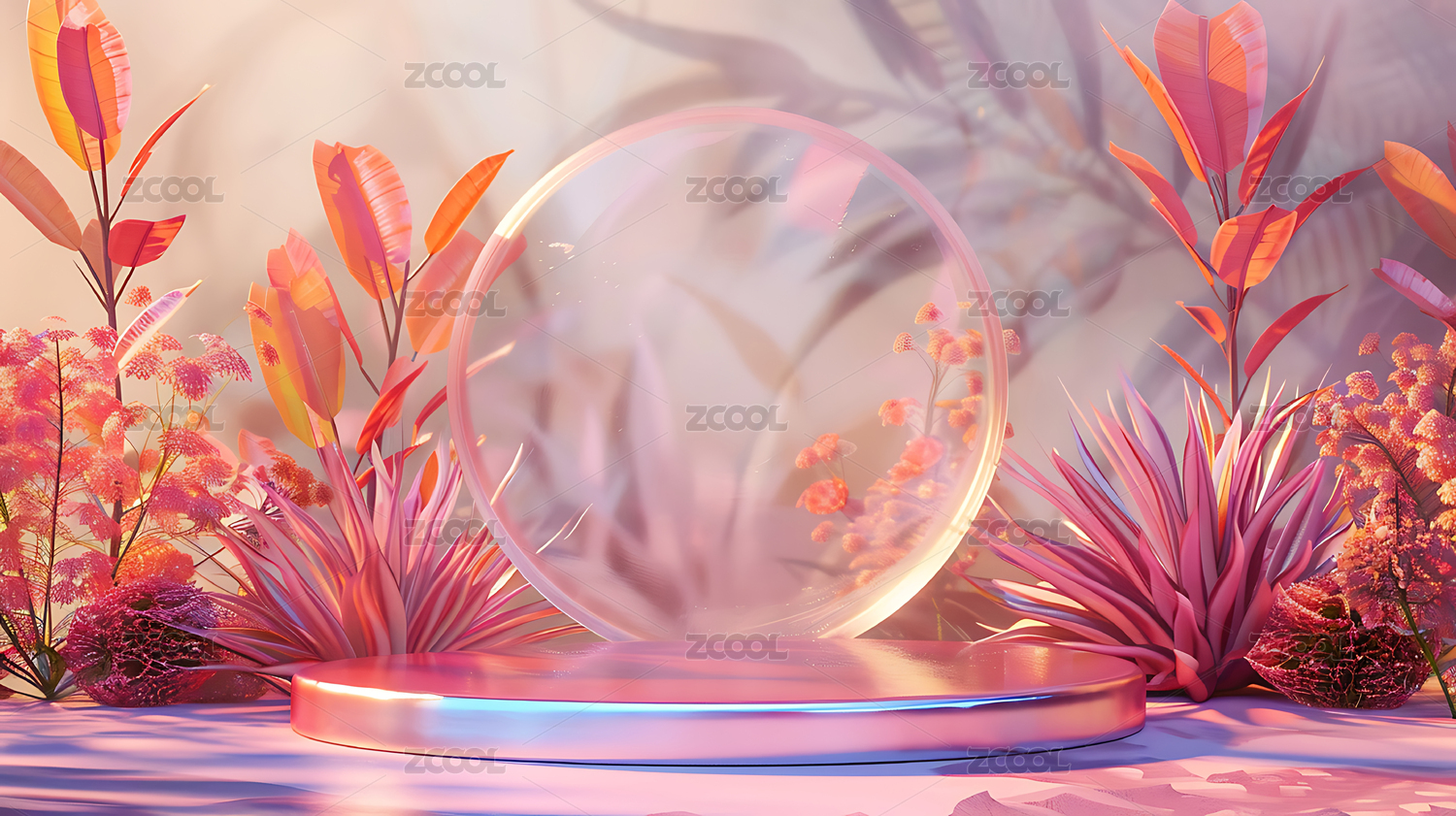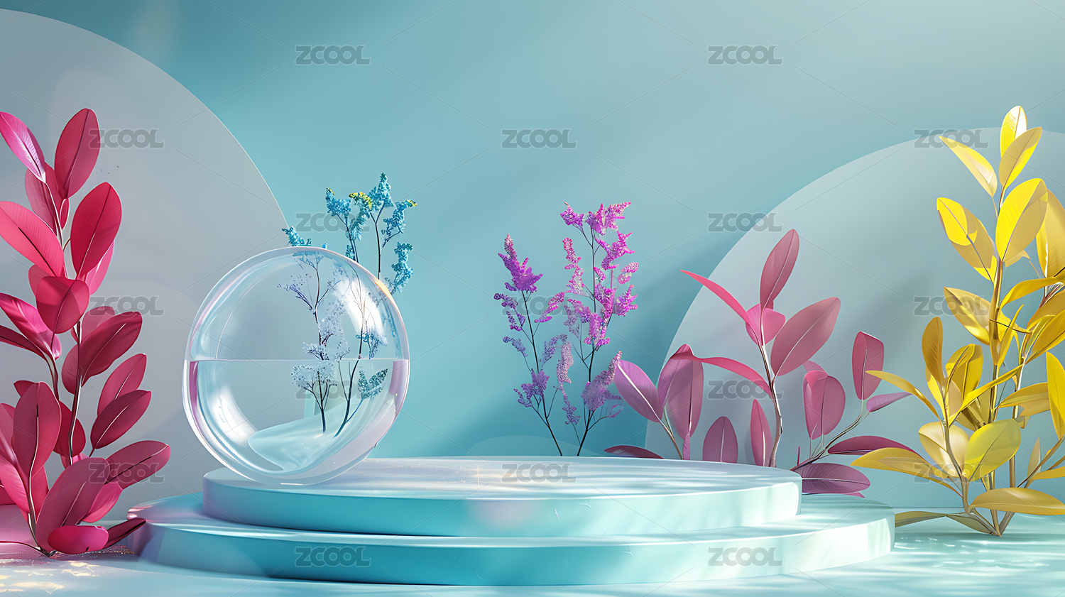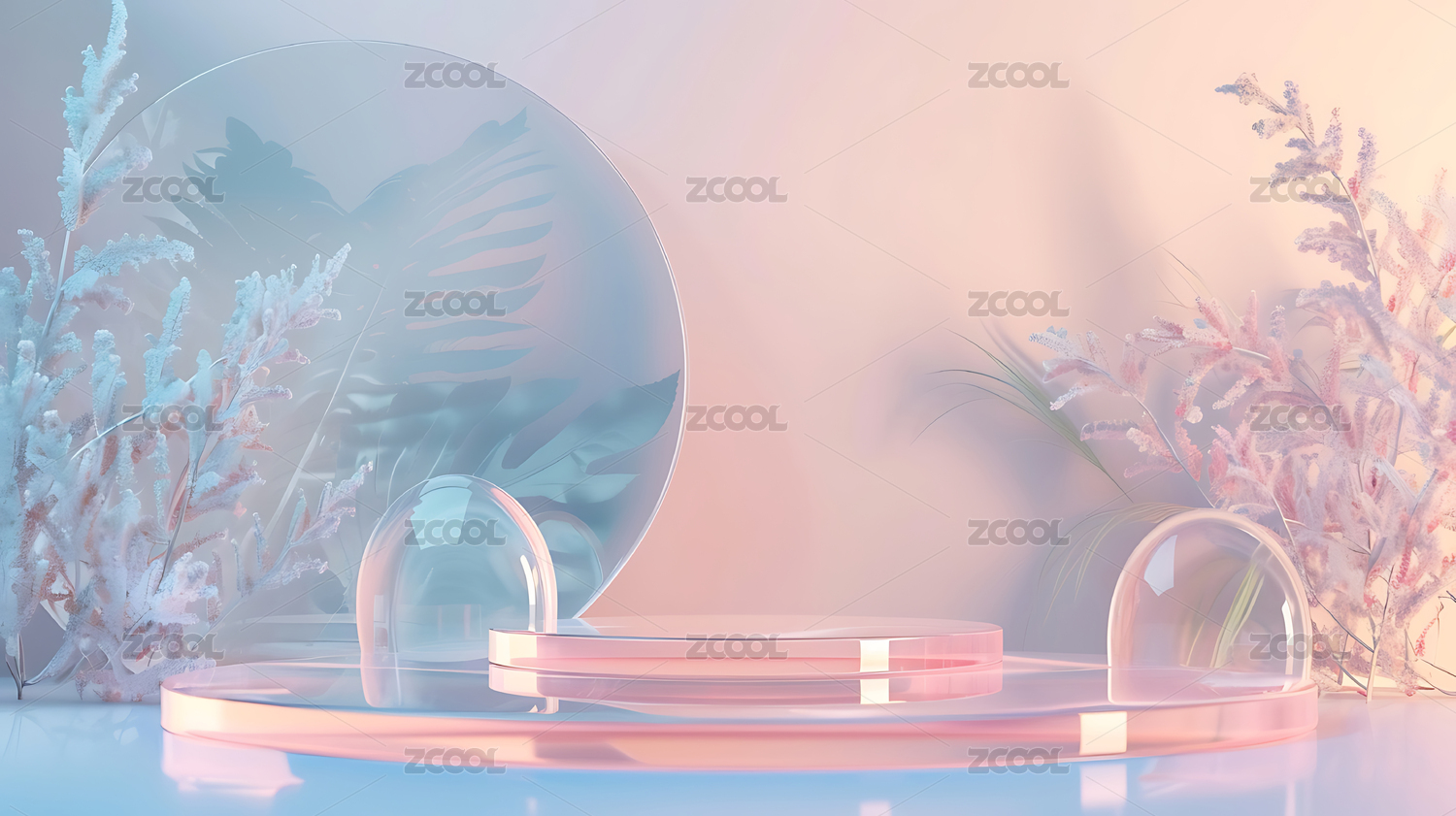 透明,玻璃,植物,梦幻,3d,展台,电商,清新,花,创意