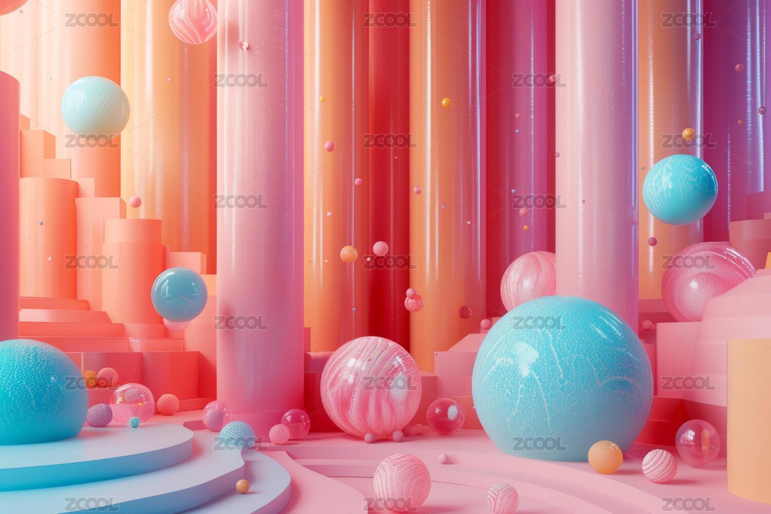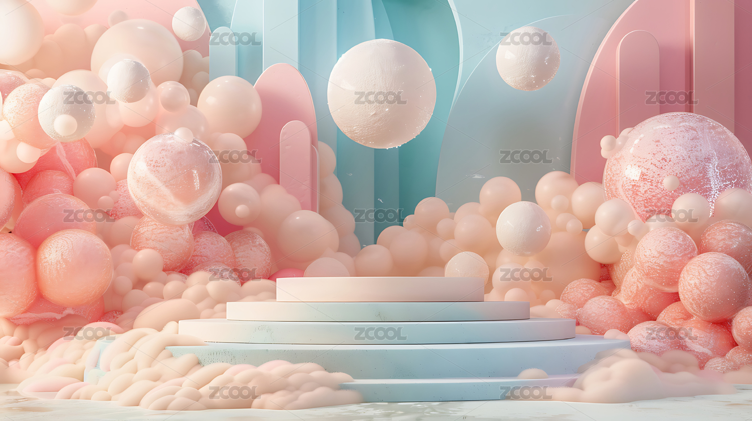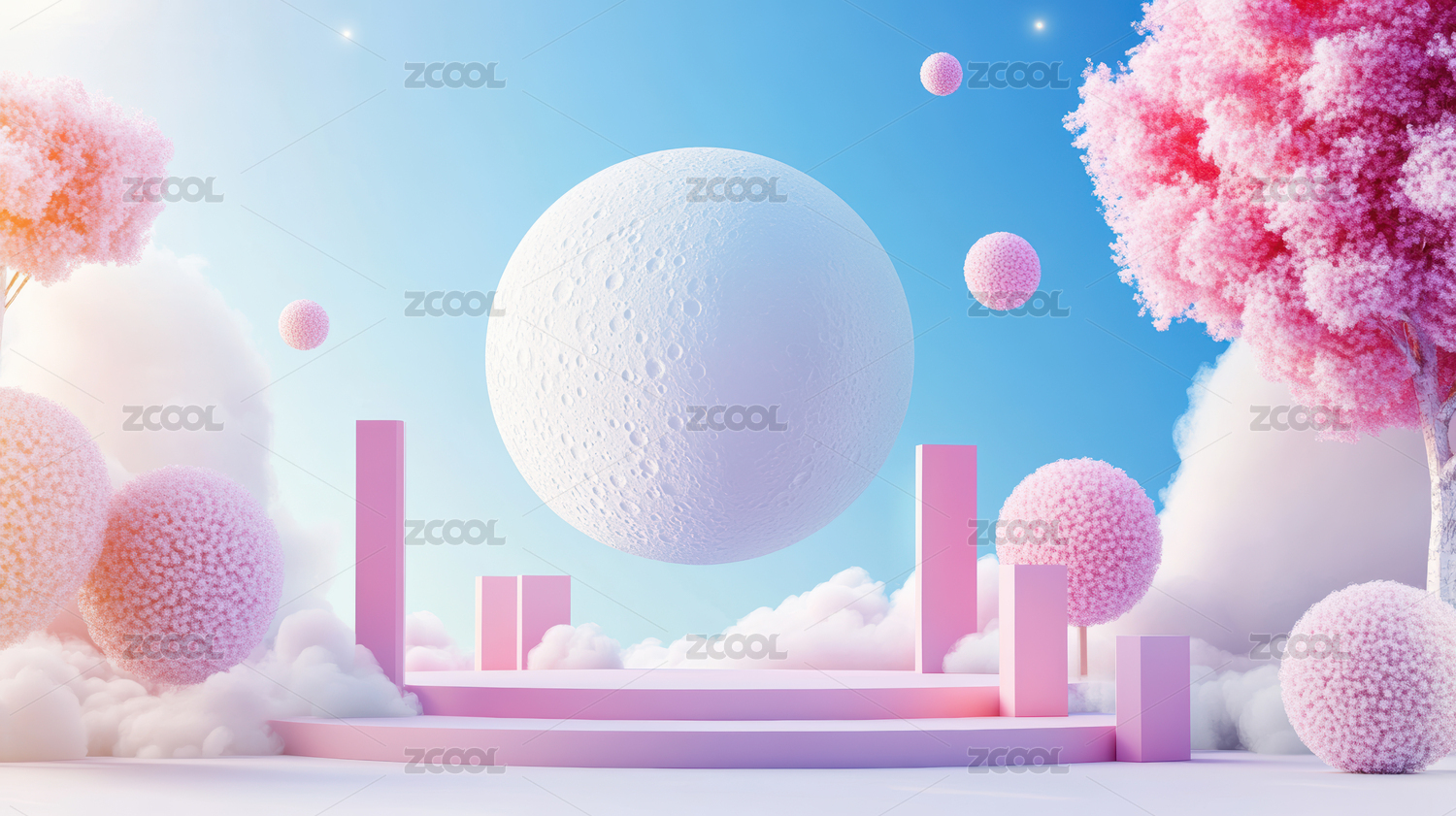 夏日,植物,梦幻,卡通,3d,展台,清新