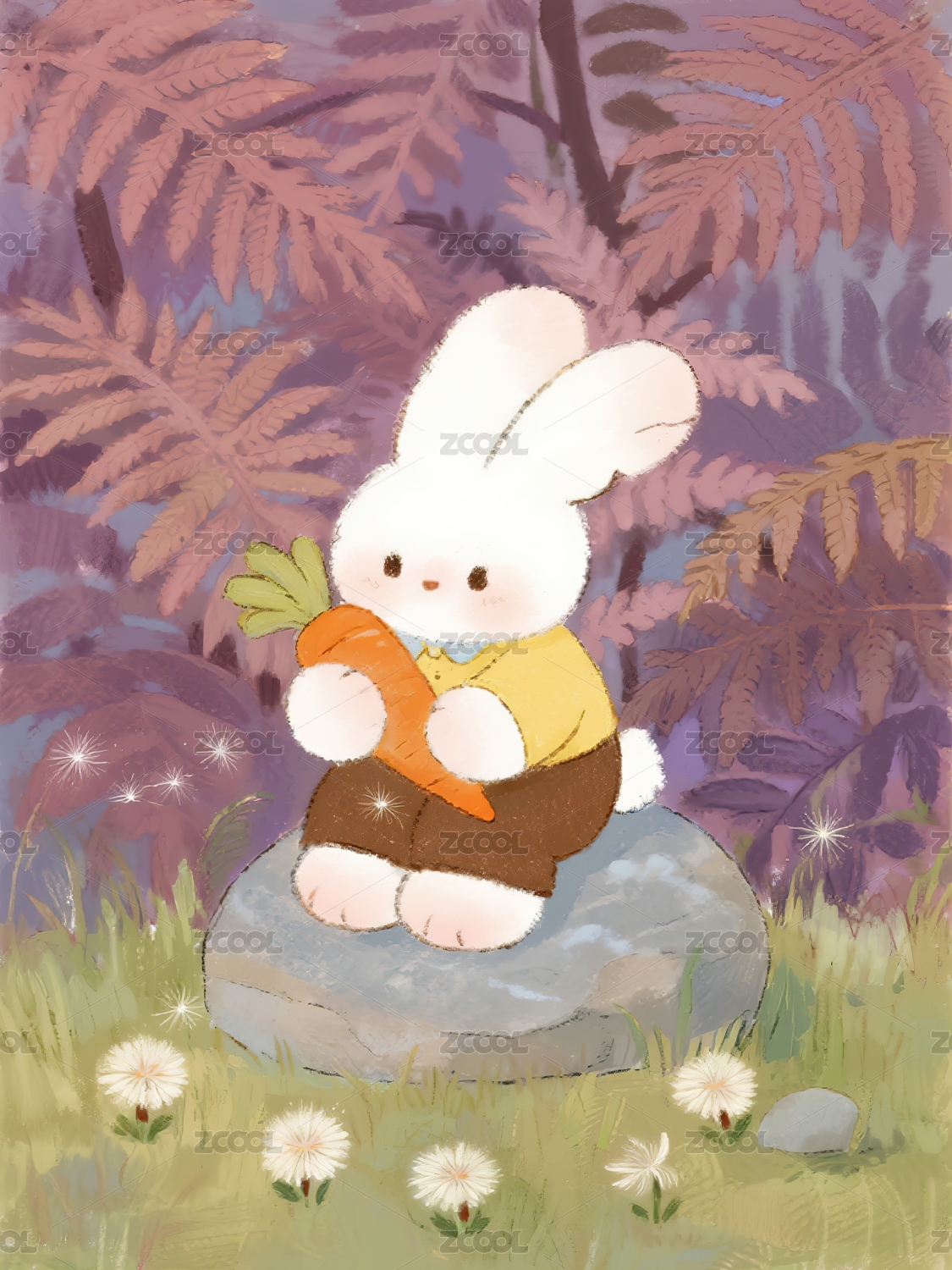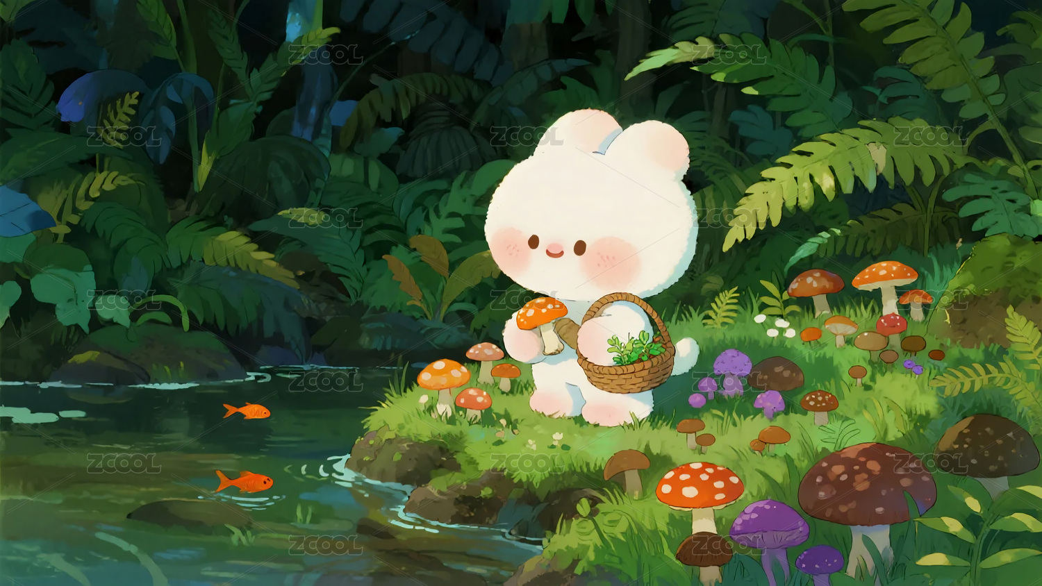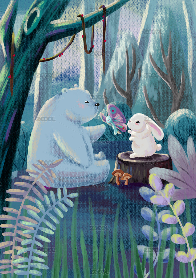 秋天小动物们在树下聚餐呼喊迟到的女孩