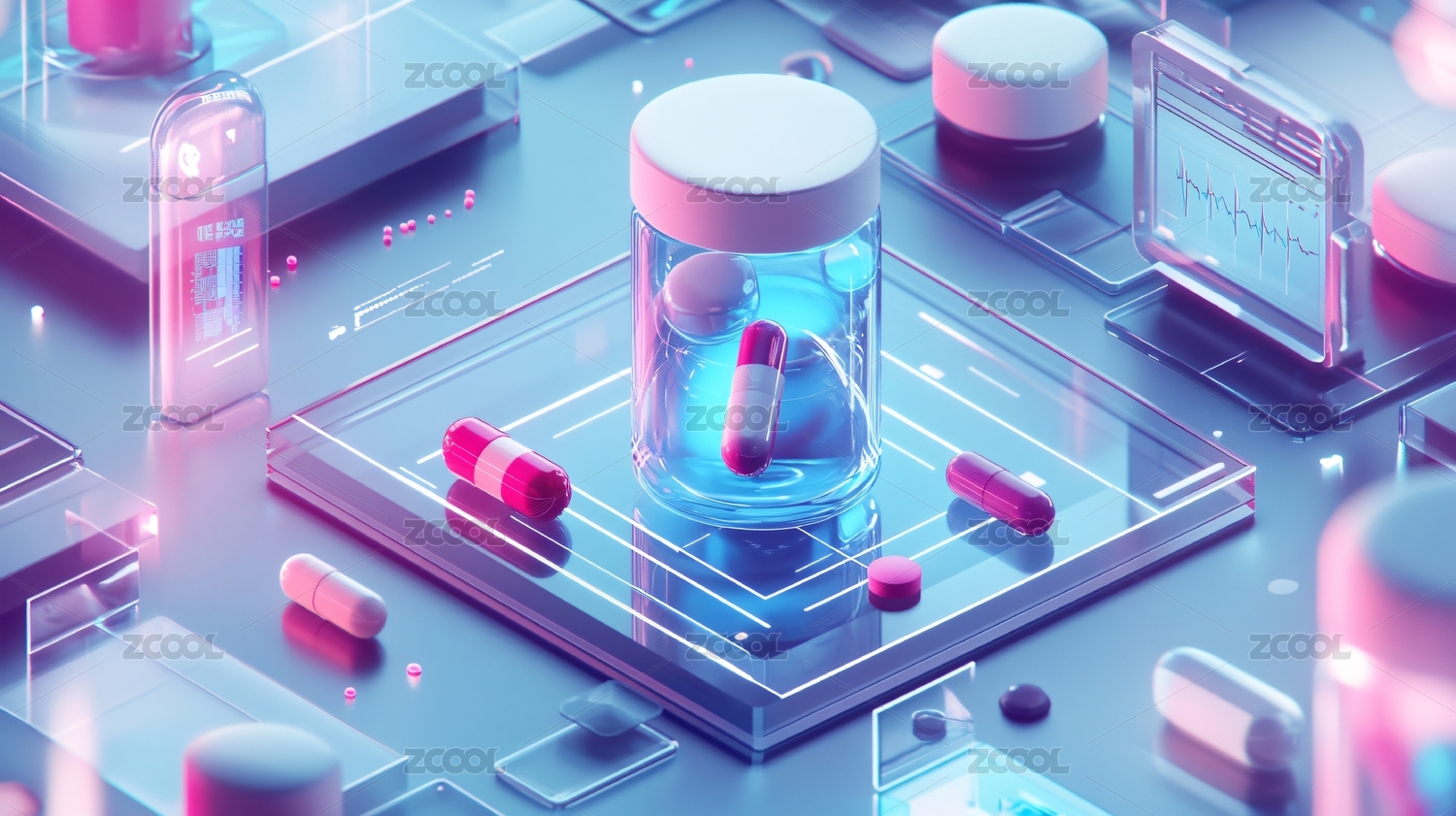 3d透明玻璃感医疗背景