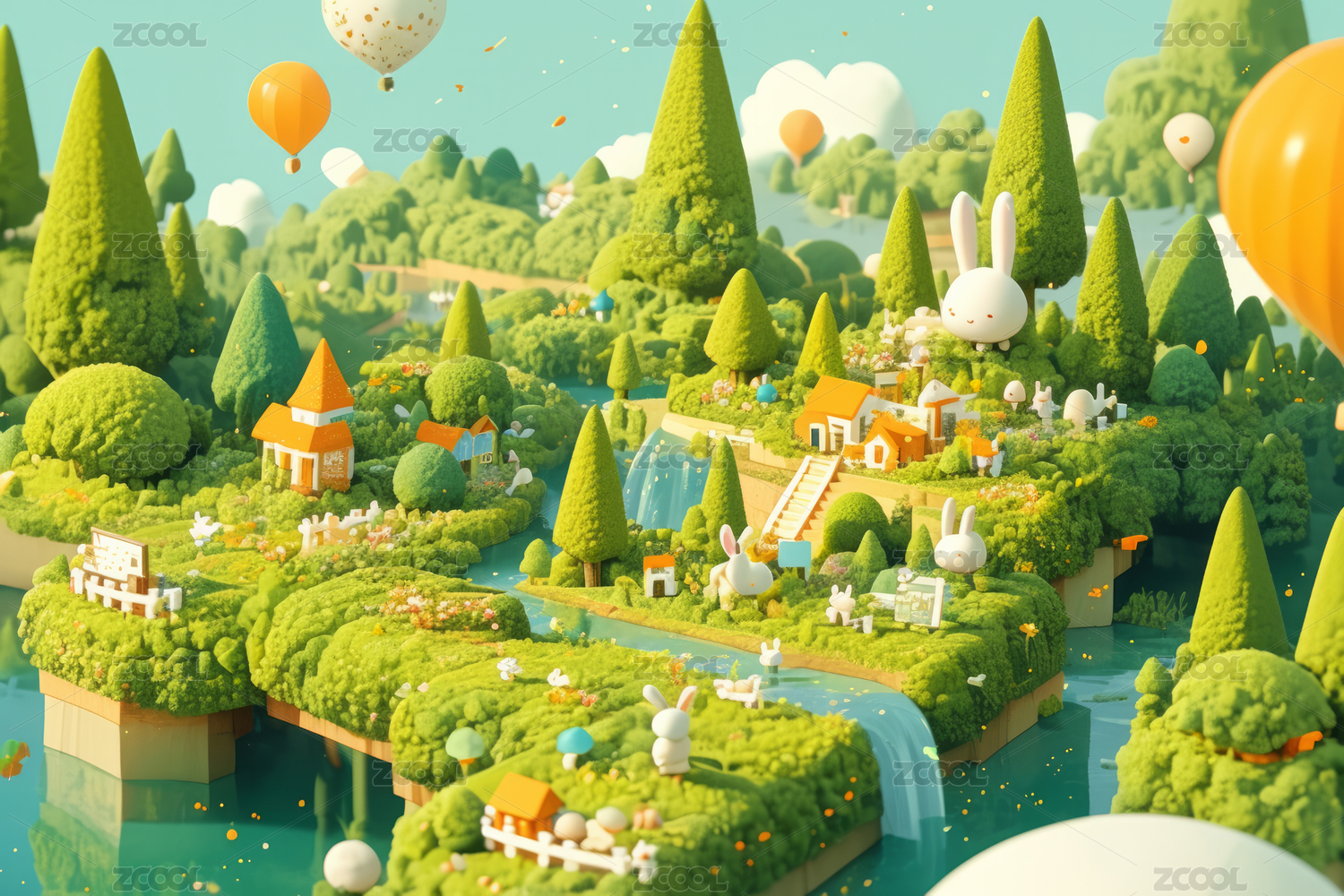 3D卡通自然场景插画