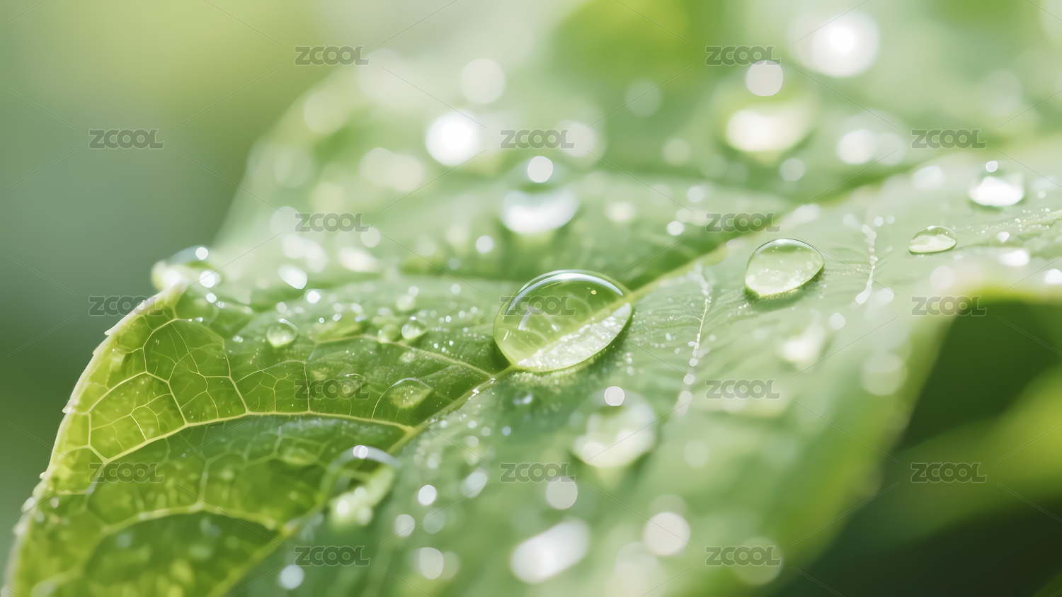 下雨天雨滴在叶子上特写雨水节气场景插图