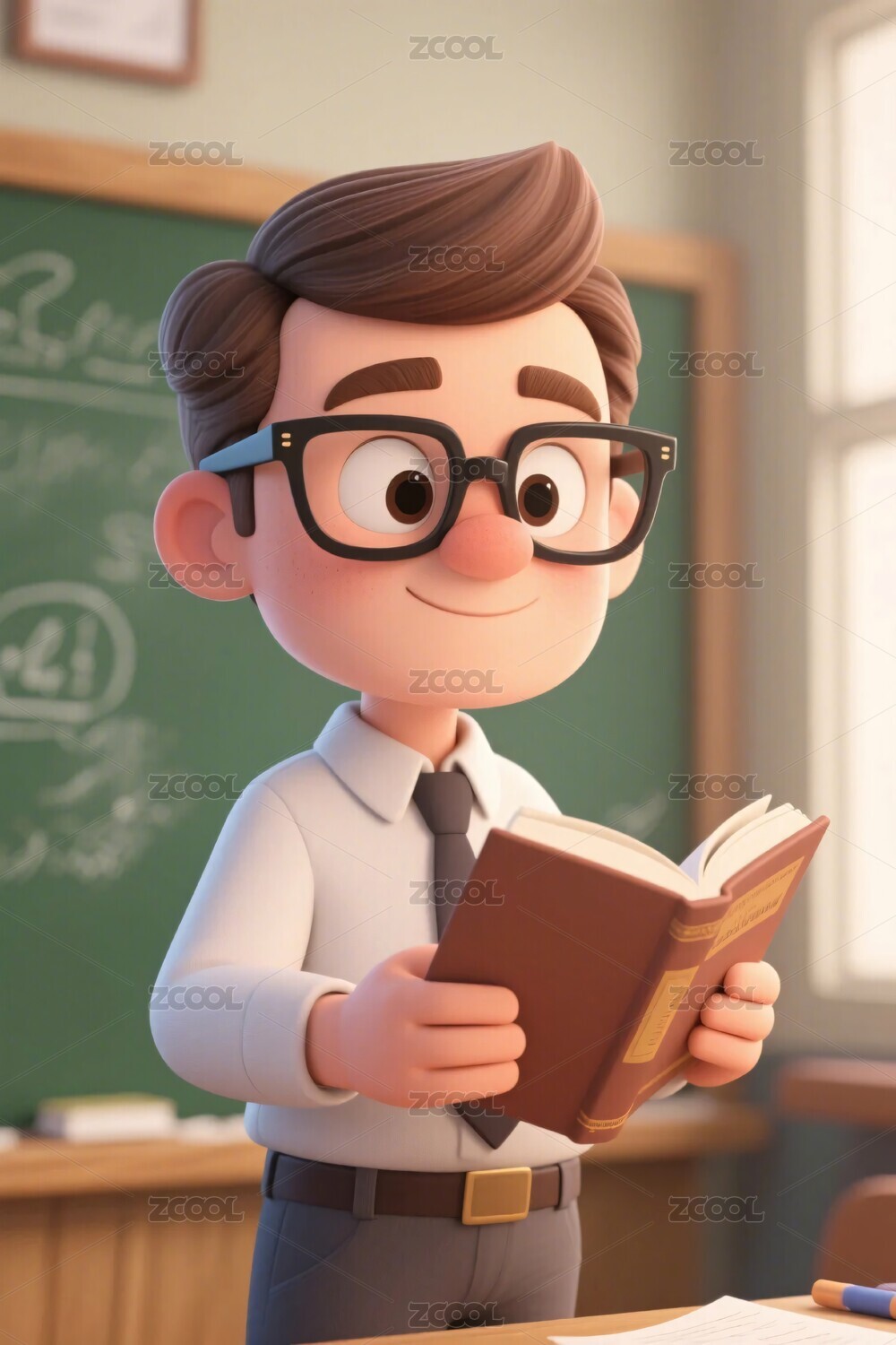 卡通,眼镜,老师,长者,教授,课堂,讲解,知识,黑板,教学