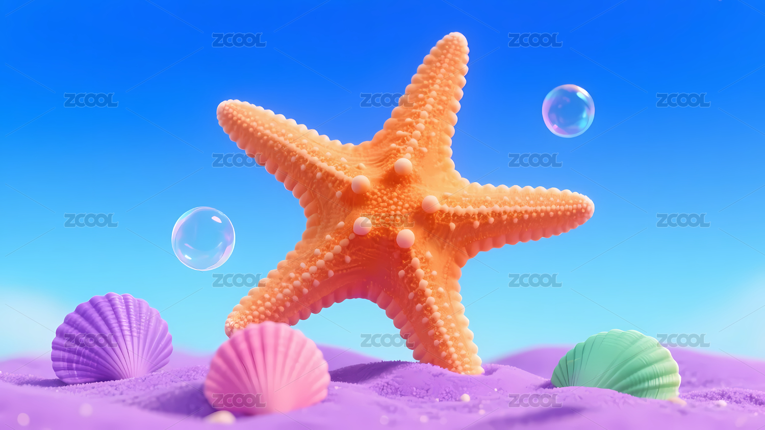 海星与沙滩泡泡