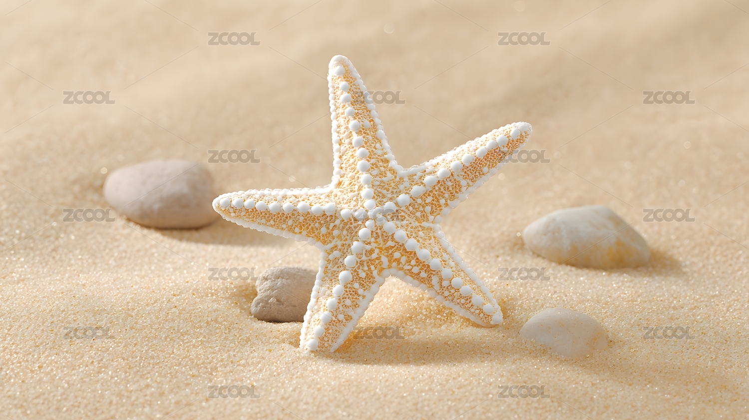 沙滩上的海星与鹅卵石