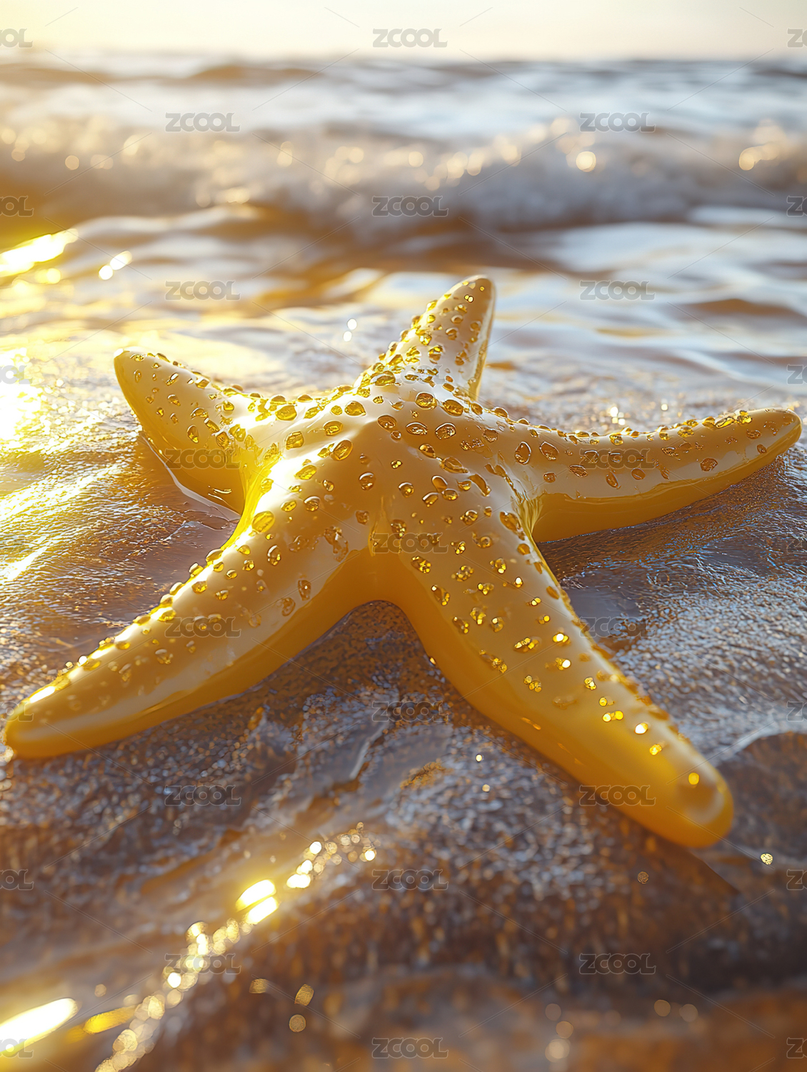 海滩浪花海星