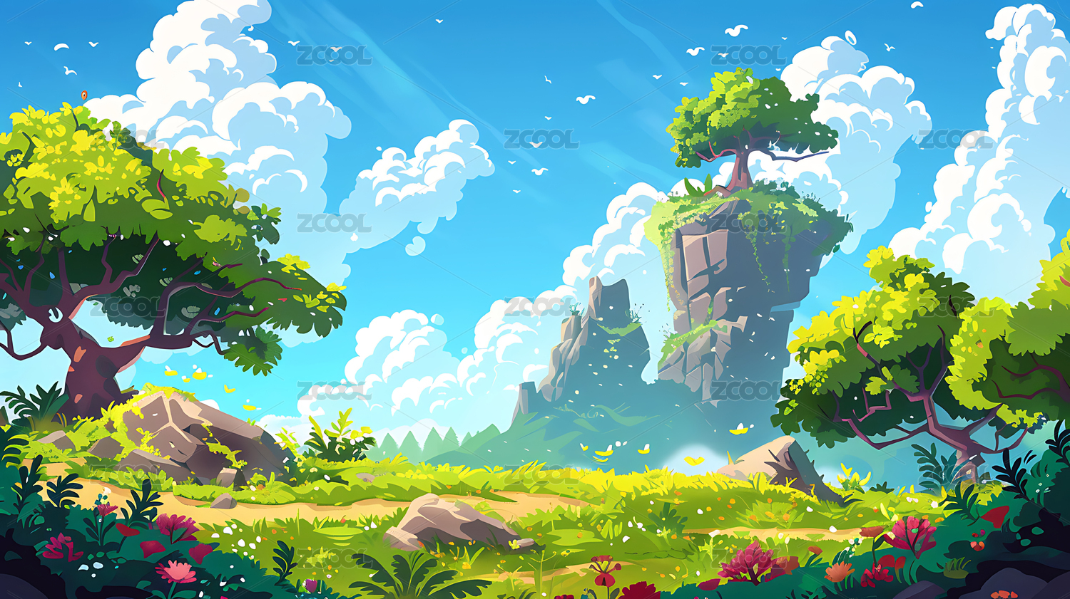 插画,卡通,游戏,动画,手游,背景,风景,自然,植物,场景