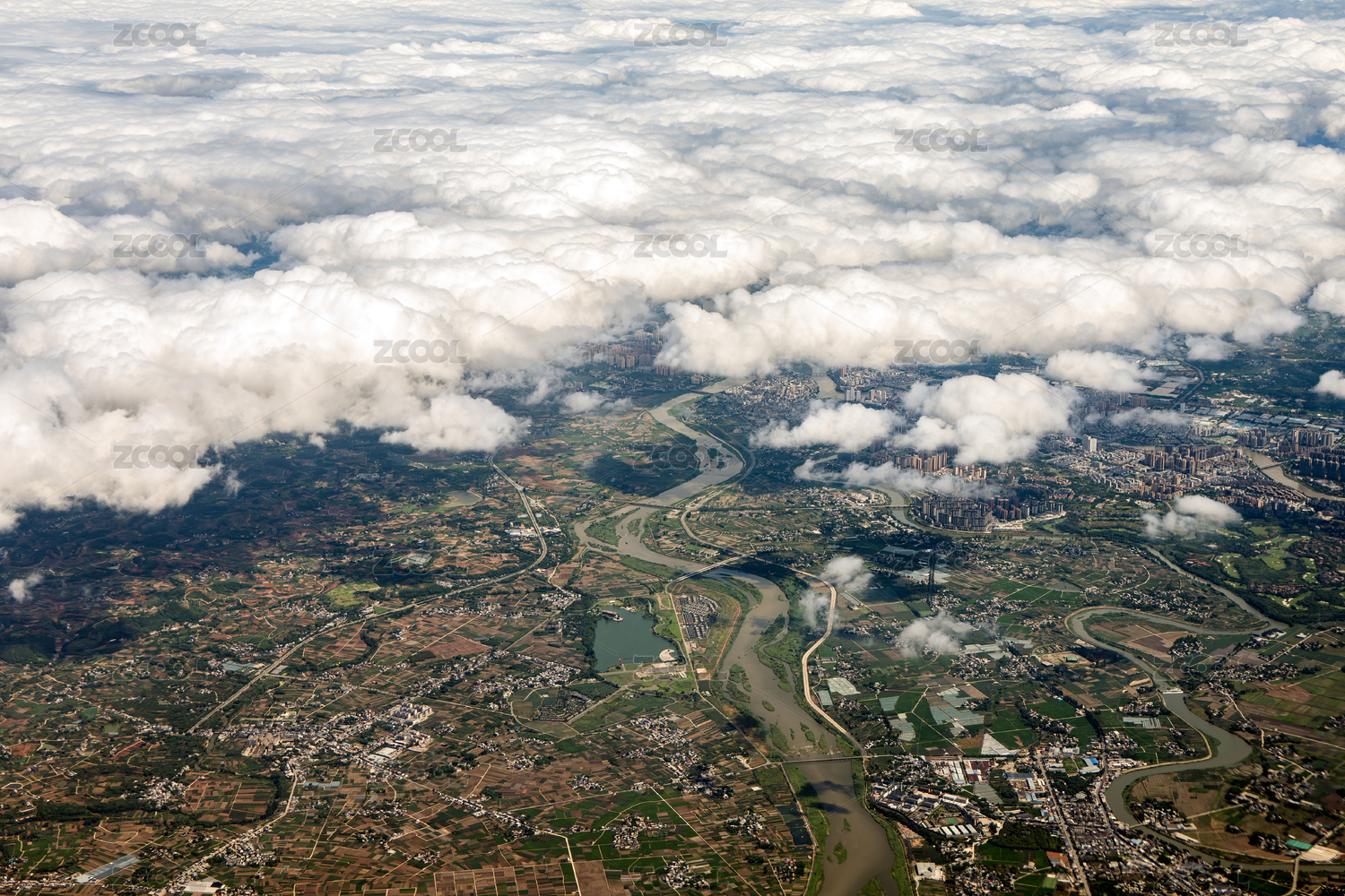 云层之上俯拍大地