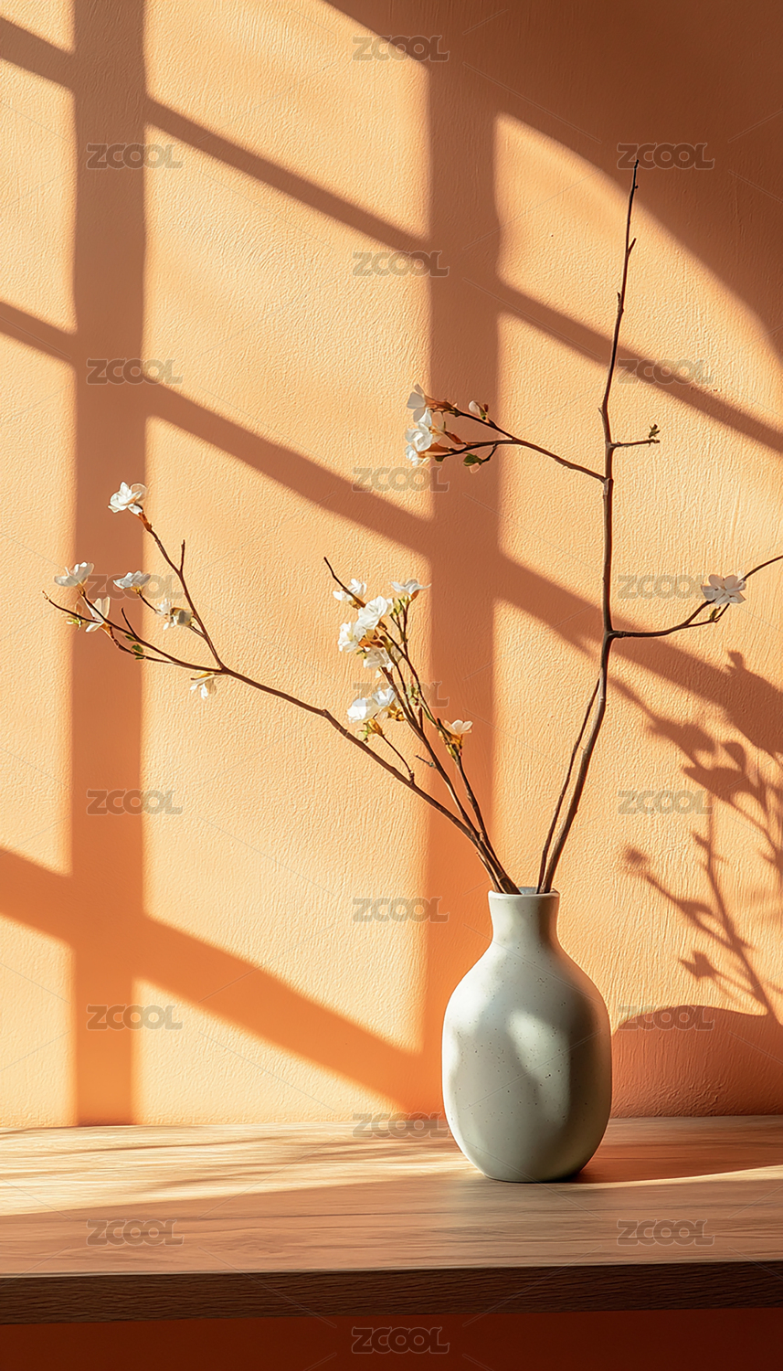 阳光下的花瓶与枝条