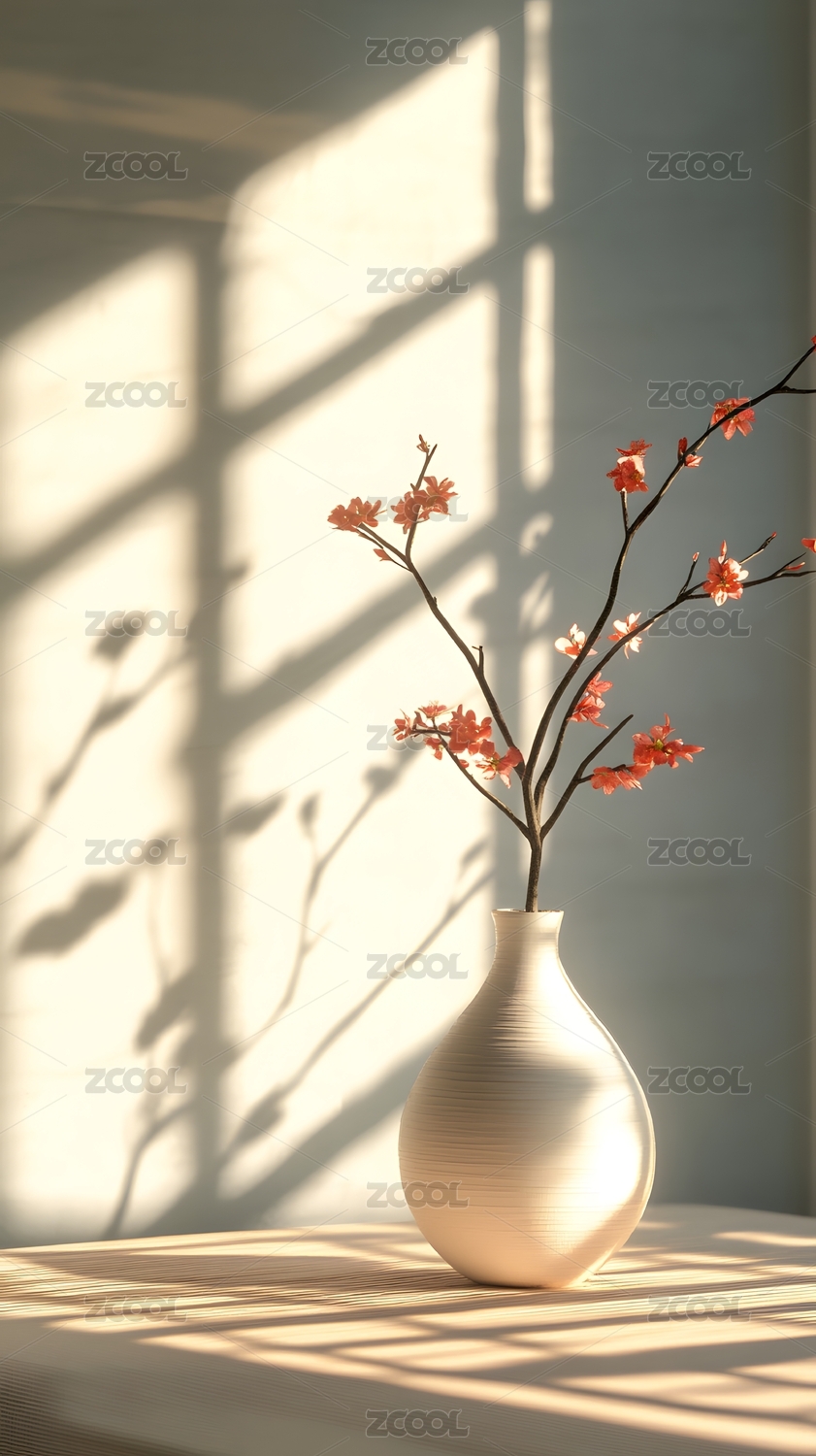 花瓶里的插花和光影