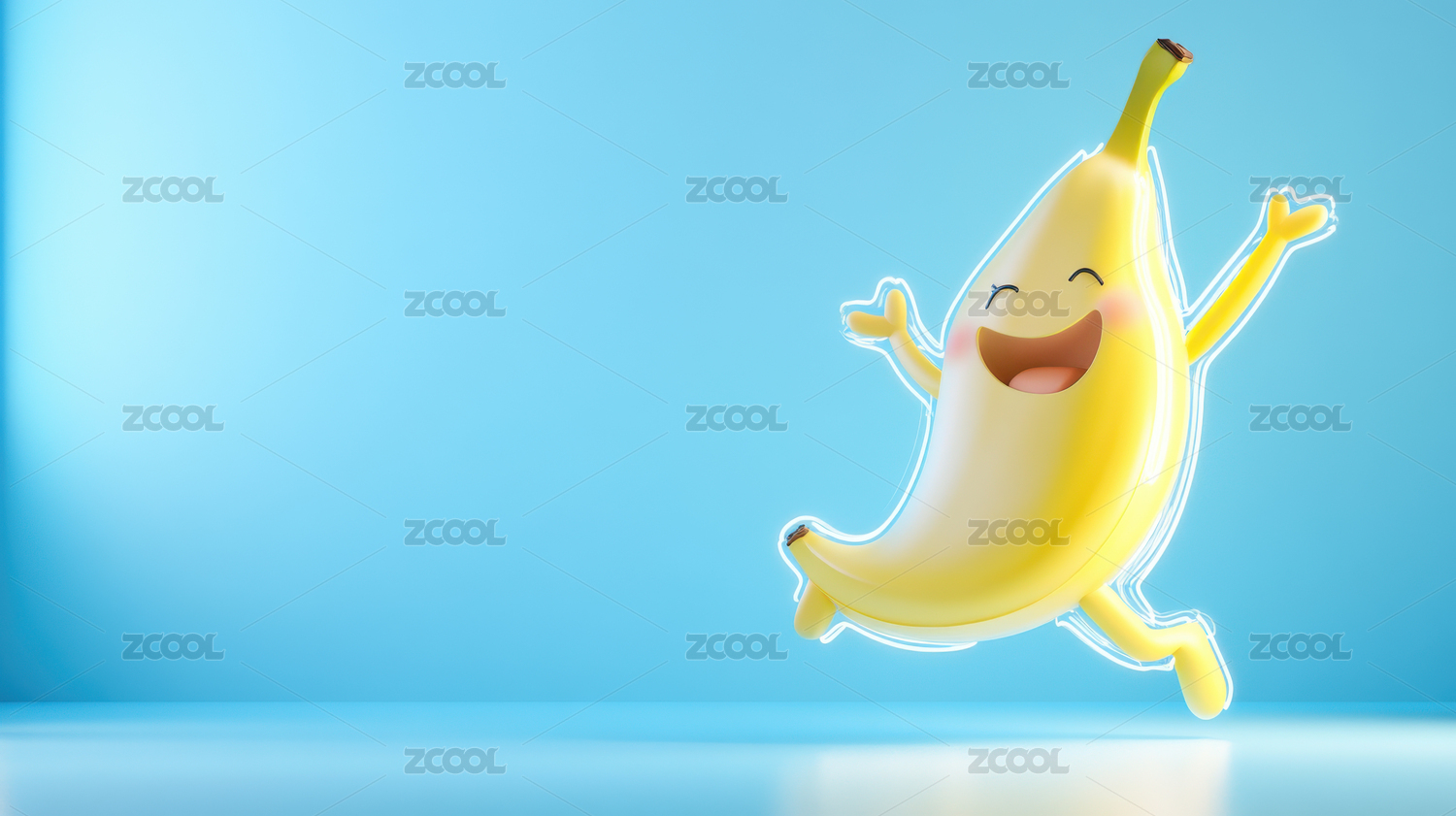 3D卡通香蕉漂浮在半空中