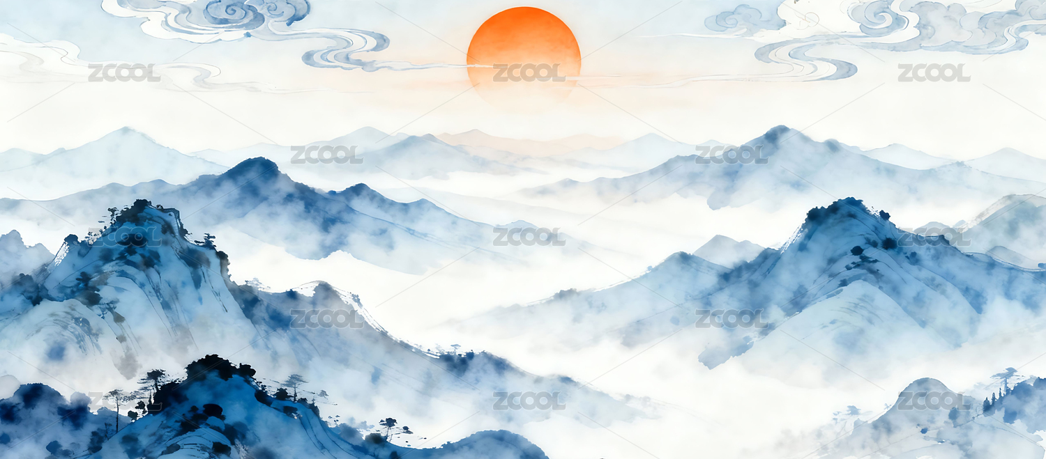 中国风,国潮,山水,水墨,淡雅,雅致,亭子,古亭,国画,群山